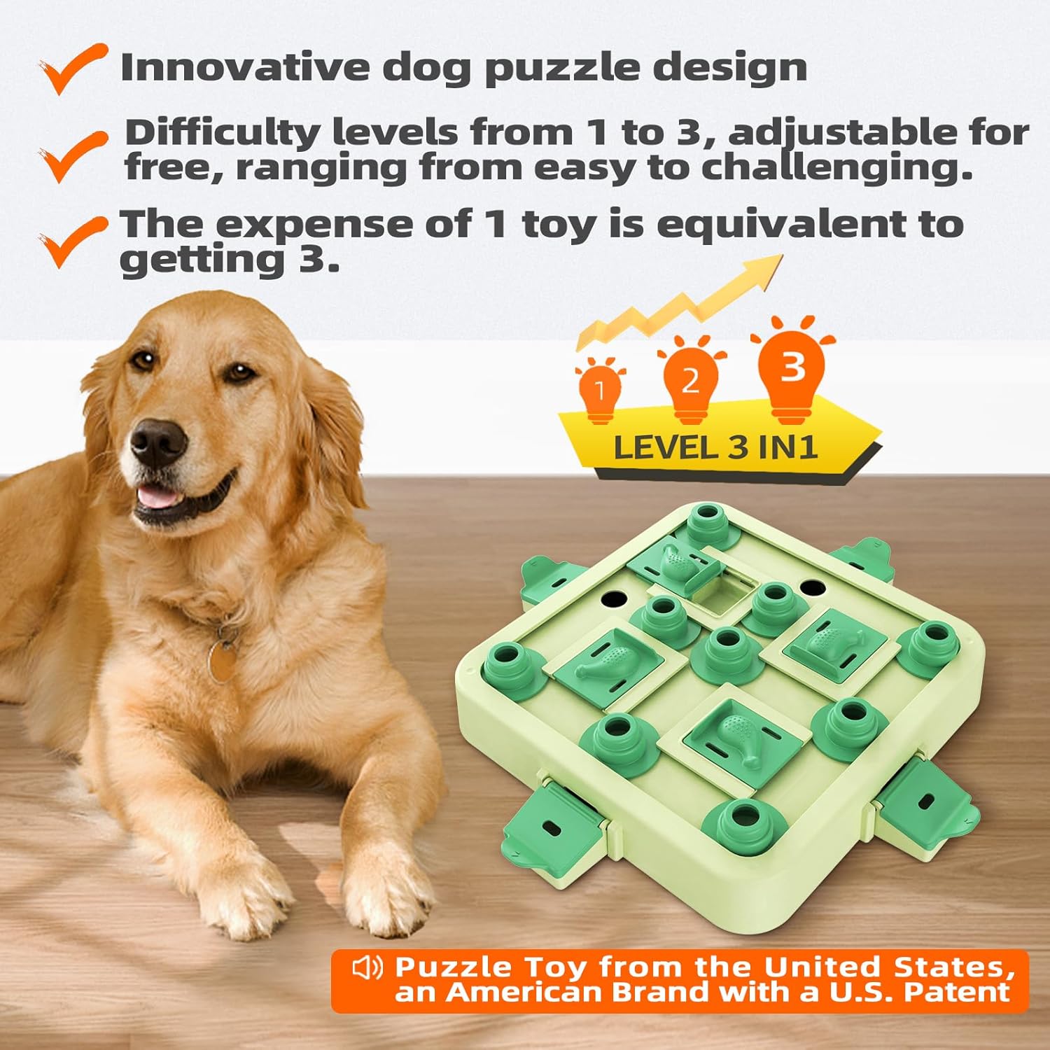 [Dog Puzzle Toy from the United States, an American Brand with a U.S. Patent] [The Perfect Chess Puzzle Toy] This innovative design combines 3 difficulty levels into 1 toy, ranging from Level 1 to Level 3. It allows you to select the appropriate challenge based on your pet’s current cognitive abilities. Ideal for pets with no prior puzzle experience or those who have completed basic intellectual development, this toy adapts to your dog’s skill level for a tailored and engaging play experience.