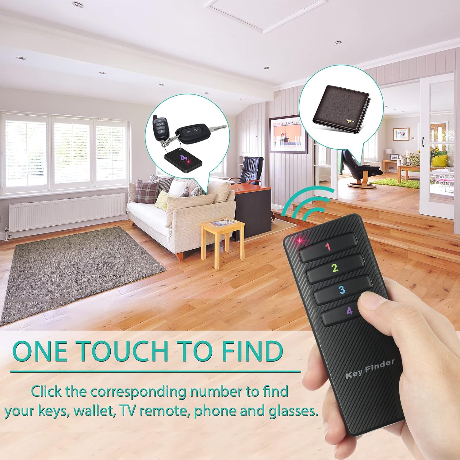 【STICK ON OR ATTACH WITH KEYRING】 What come with this find my keys device are 4 double-sided stickers and 4 keyrings. The stickers attach the receiver to the TV remote control, mobile phone, glasses, luggage, etc., while the keyrings applies to your keychain, shoulder bags, ear pods, kids, pets and umbrella. For the wallet, simply put the receiver inside.