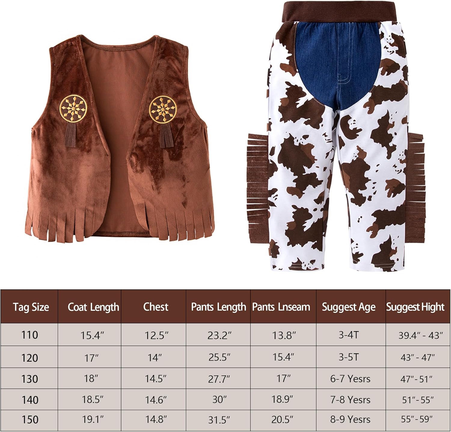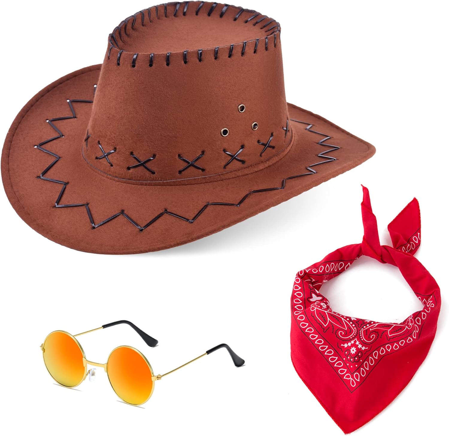 This 5-piece cowboy costume set includes a cowboy hat, bandana, sunglasses, vest, and pants. Experience the authentic Wild West and transform into a true cowboy. Are you ready, cowboy?