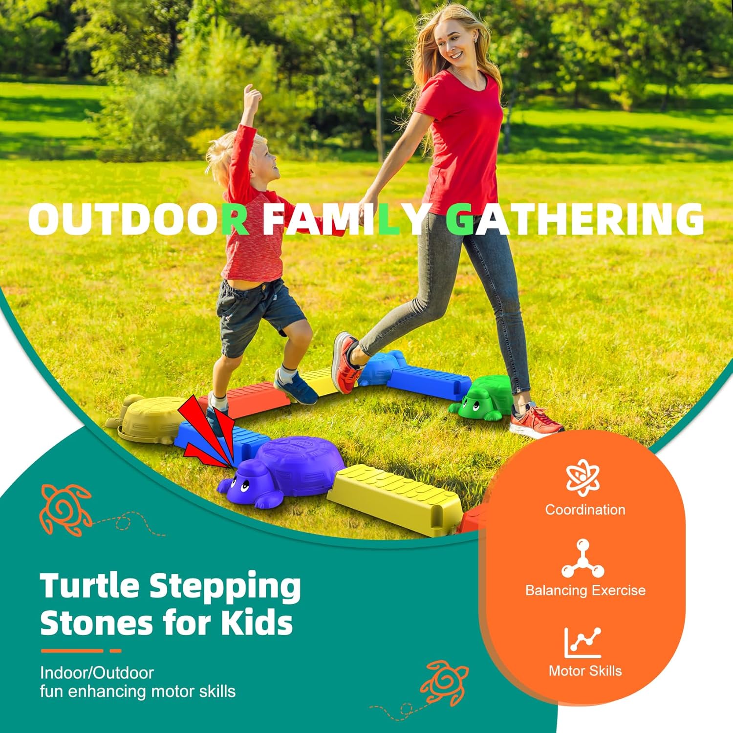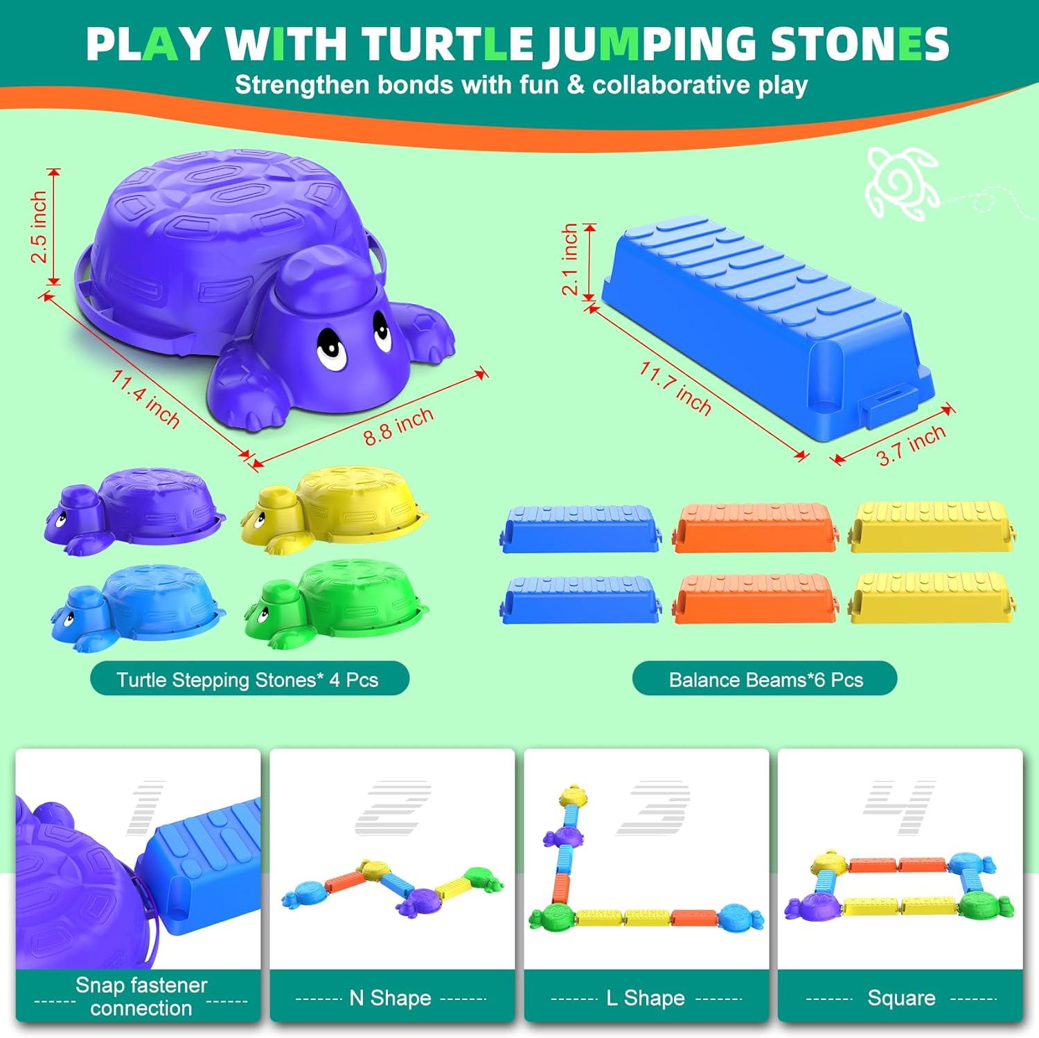 Safe and Reliable Kid Toys: The 10 pcs turtle stepping stones for kids provide a secure footing for children jumping games indoor and outdoor , engineered with a non-slip rubber base and textured surface, ensuring their safety during play. Ideal for indoor games or outdoor family activities in the yard.