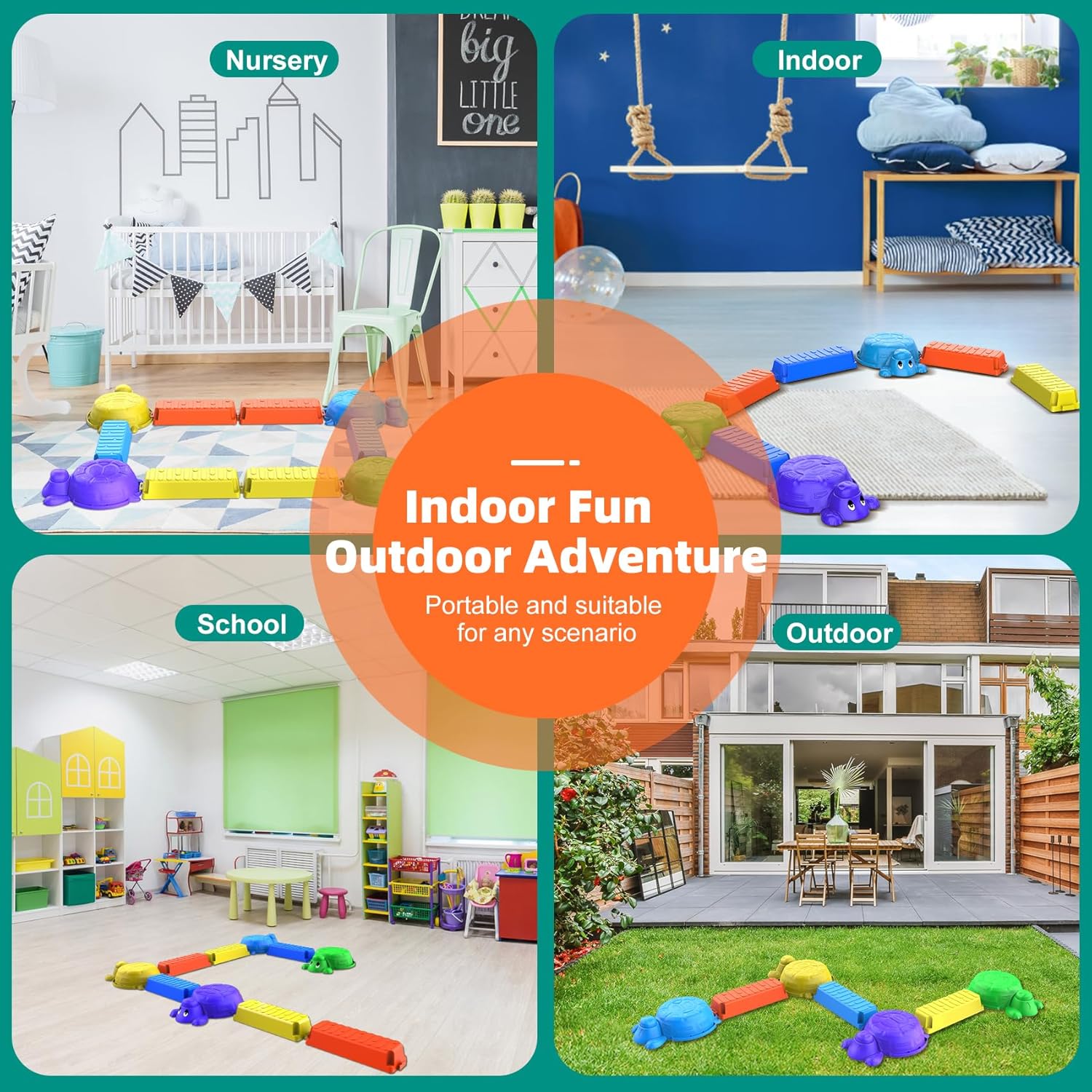 Ideal Gift for Toddlers : With their vibrant colors and versatile design, these balance stepping stones for kids 1-3, 3-5, 5-7 years inspire creativity and imaginative play. They can be arranged in multiple patterns, and ideal for group activities in nurseries or as birthday gifts.