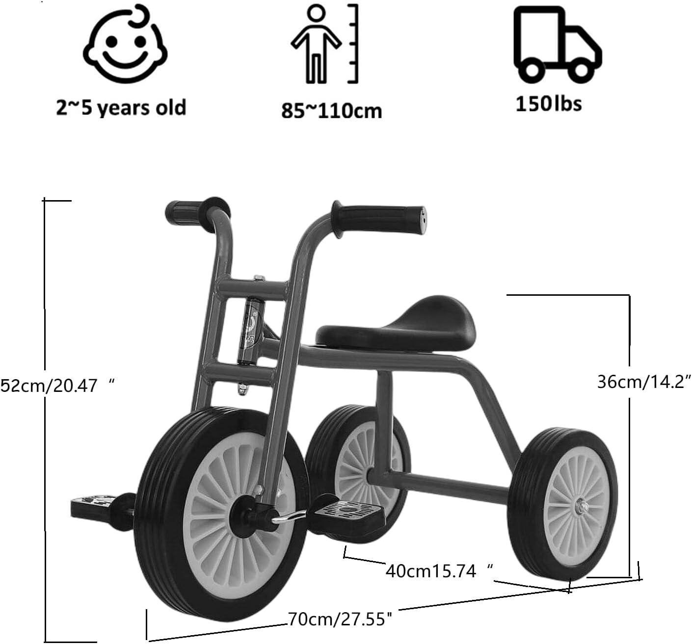 [[STURDY DURABLE]Tricycle Body Features a Sturdy High Carbon Steel Frame, That Can Hold Up to 200 lbs. Rubber Tires, Deepen the Tread Pattern and Increase the Friction, Whether It is on the Road or in the Yard or in the Garden, It Will Not Slip Easily, Explosion-proof, Mute, Anti-skid and More Durable.