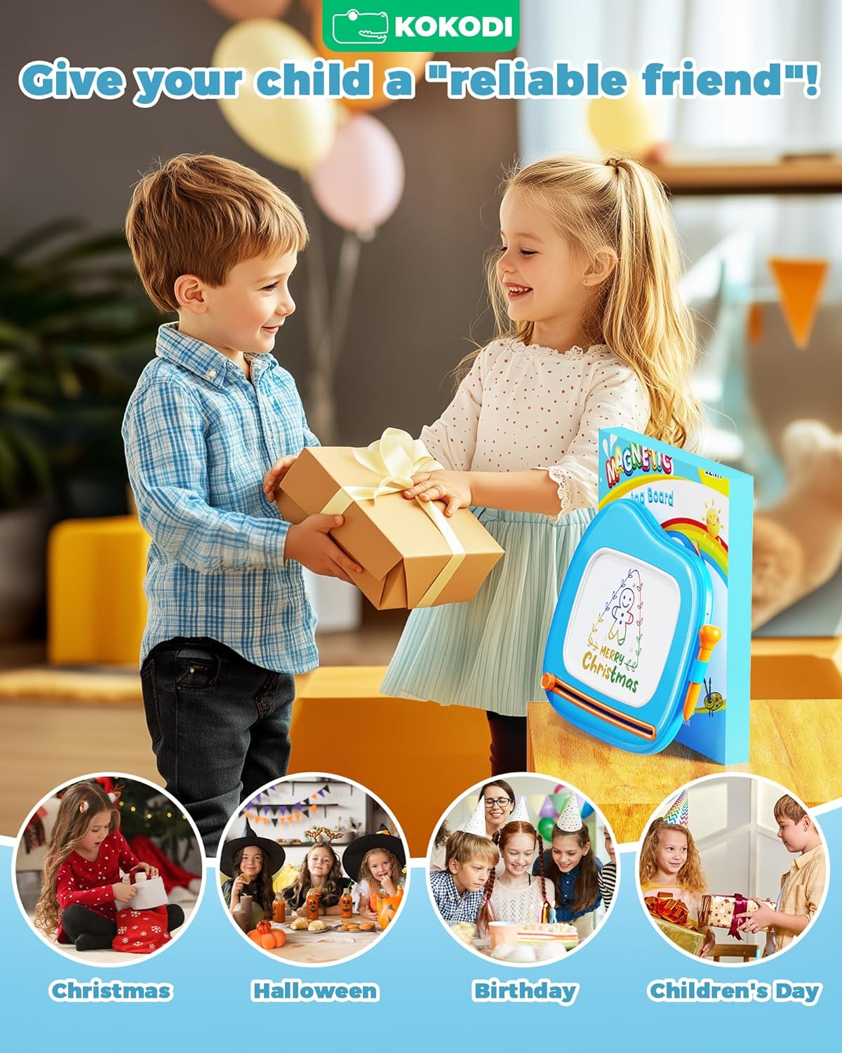 【Mom’s Helper】KOKODI colorful magnetic doodle for toddlers is easy to use without limiting its fun. It’s easy to draw on and easy to remove. It will keep kids busy without any help! Awesome toddler toys for ASD Autism kids. This vivid drawing board is a good helper to accompany kids’ growth while stimulating creativity & imagination, cultivating patience and improving hand coordination.