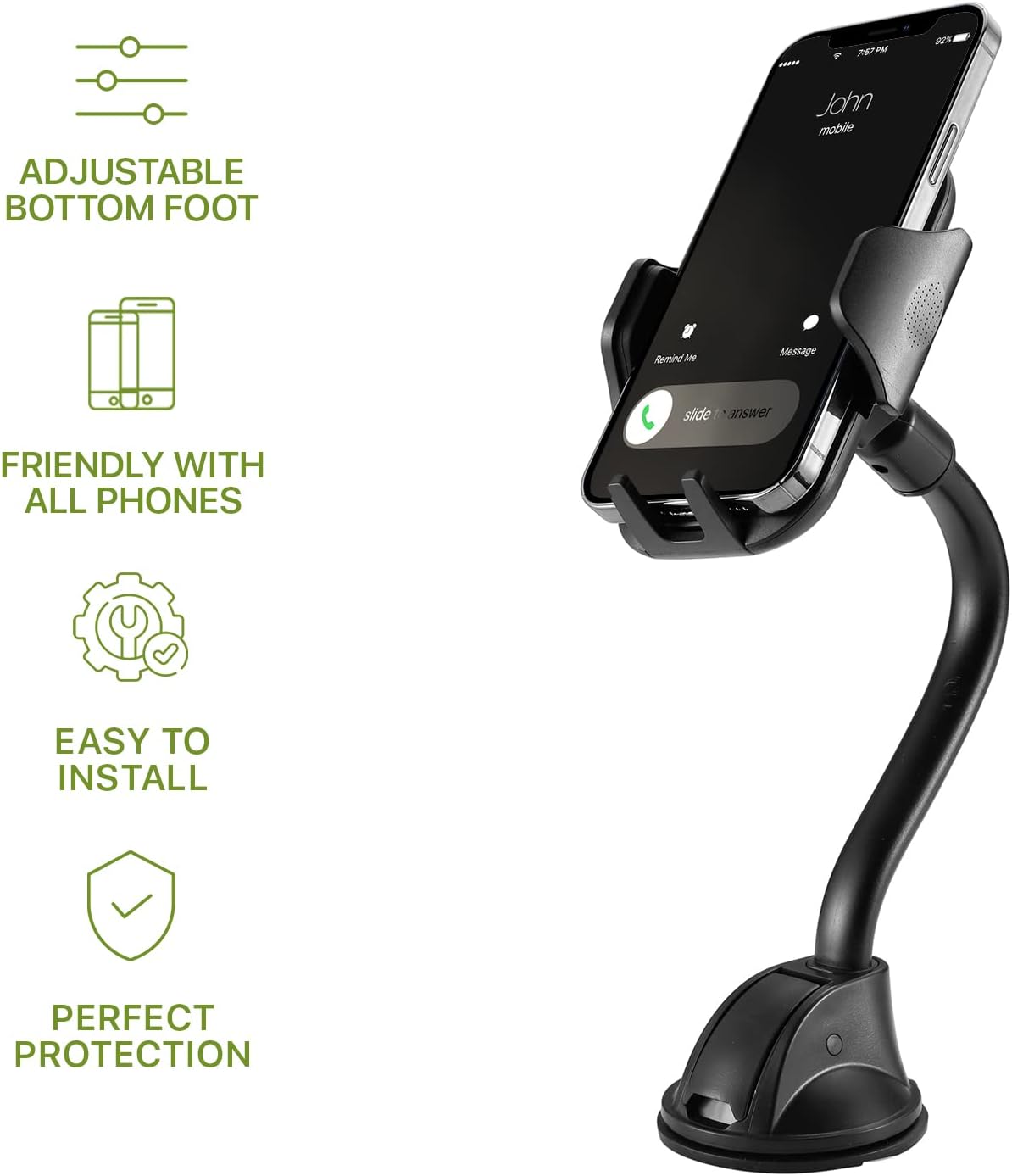 Wide Compatibility and Flexibility: Our car phone holder, cell phone holder, and iPhone holder for car are compatible with a wide range of smartphones, including the latest iPhone and Galaxy models. Additionally, our flexible gooseneck allows you to adjust the phone’s angle and position for maximum visibility, making it ideal for using GPS while driving. We have cellphone holder for car and phone holder for car that can fit different phone sizes.
