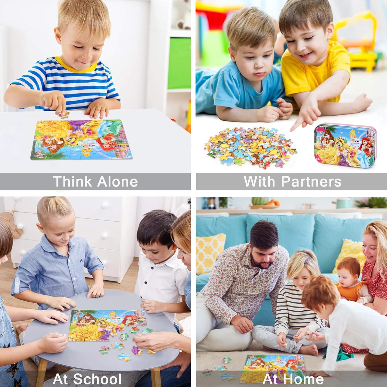 【PUZZLES FOR KIDS WITH METAL STORAGE BOX】 Kids jigsaw puzzles ages 4-8 come with a metal tin box which is very convenient to store and takes for travel. The pieces of kids puzzles ages 3-5 will not be lost as well.Kids enjoy doing puzzle game and form good habits of integrating things.The finished puzzle measures 9.5x6x0.12 inches. Also we provide a full-Size picture guide in package and the picture of kids puzzles ages 6-8/5 year old puzzle/puzzle for 4 year old is clear and vibrant