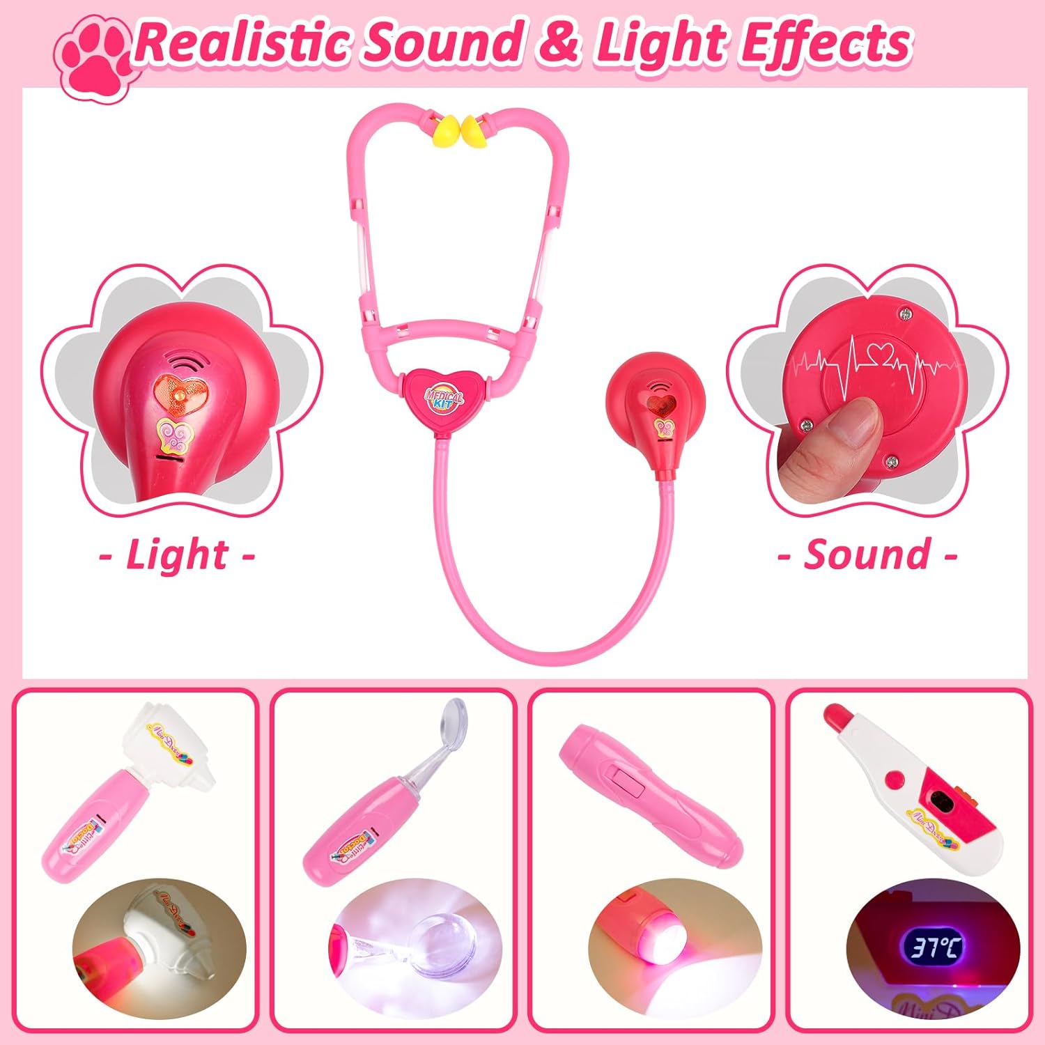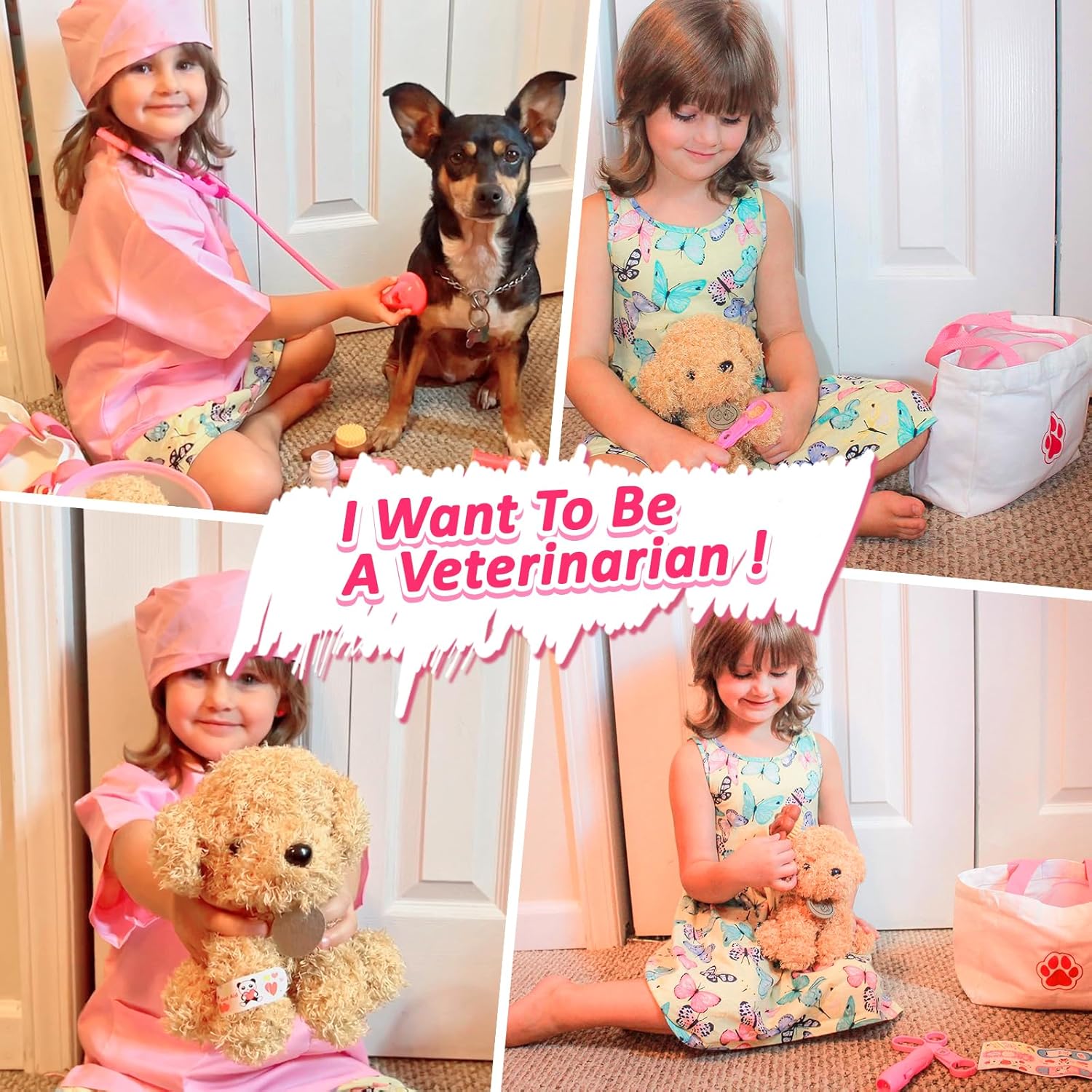BE A REAL VETERINARIAN: Real heartbeat can be heard when kids use a stethoscope to check body. It will be a more real and interesting experience when kids wear cute doctor costume and use the light-up medical tools for puppy
