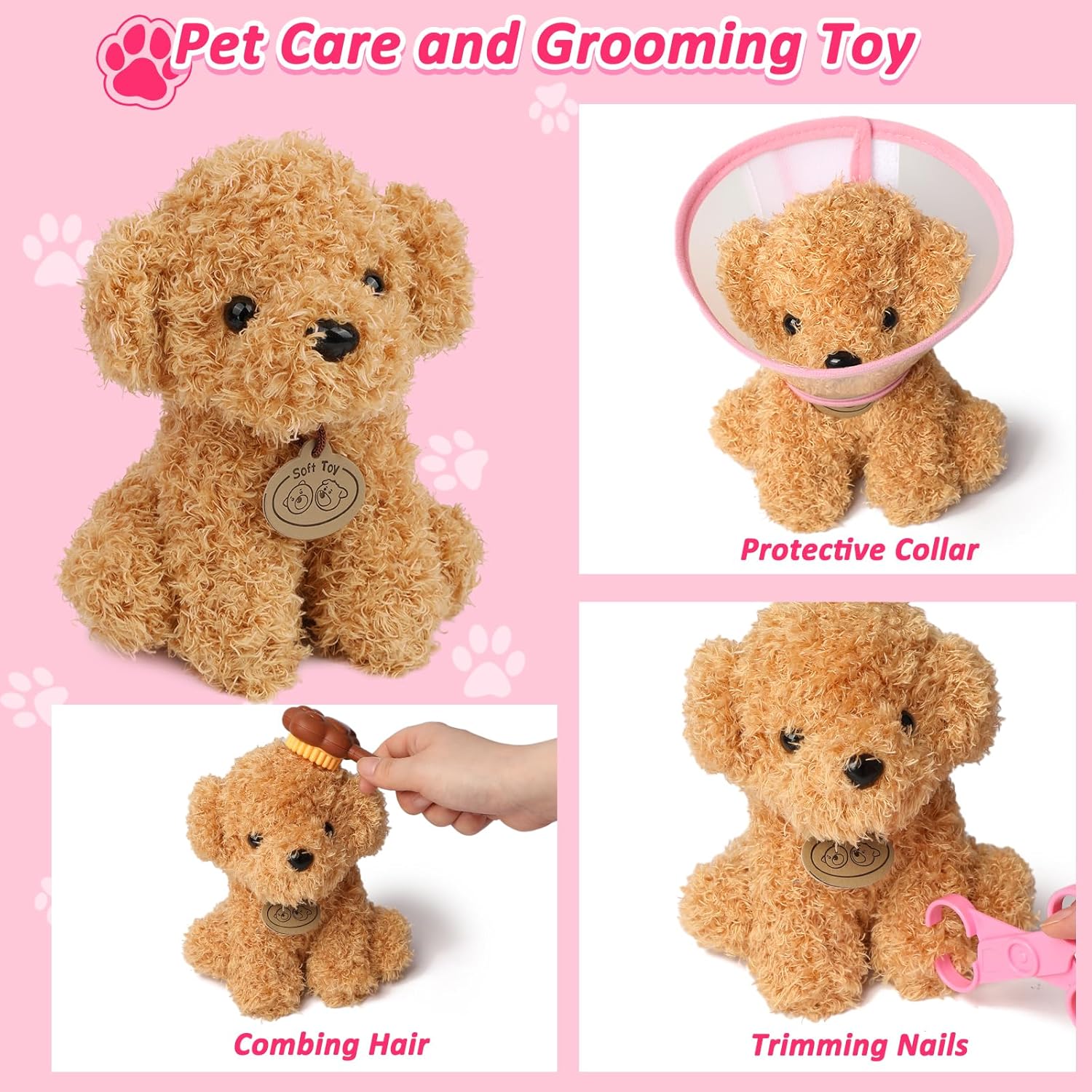 ABUNDANT DOCTOR TOYS: Our vet play set comes with storage bag, doctor costume, doctor hat, dog toy, pet comb, forceps, glasses, stethoscope, protective collar, pill bottles×2, dental mirror, otoscope, flashlight, thermometer, syringe, stickers×10. Please let us know if you have any issues