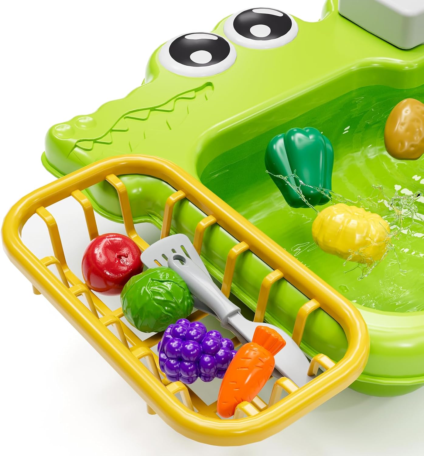 【Great Gifts for Toddlers】This large-capacity pretend play kitchen sink toy is ideal as a birthday gift for toddlers 1 2 3 4 years old, and it is also perfect for pretend cooking chef games, role-playing, educational toys, sensory toys, early development, toddler holiday toys, Kids love it.