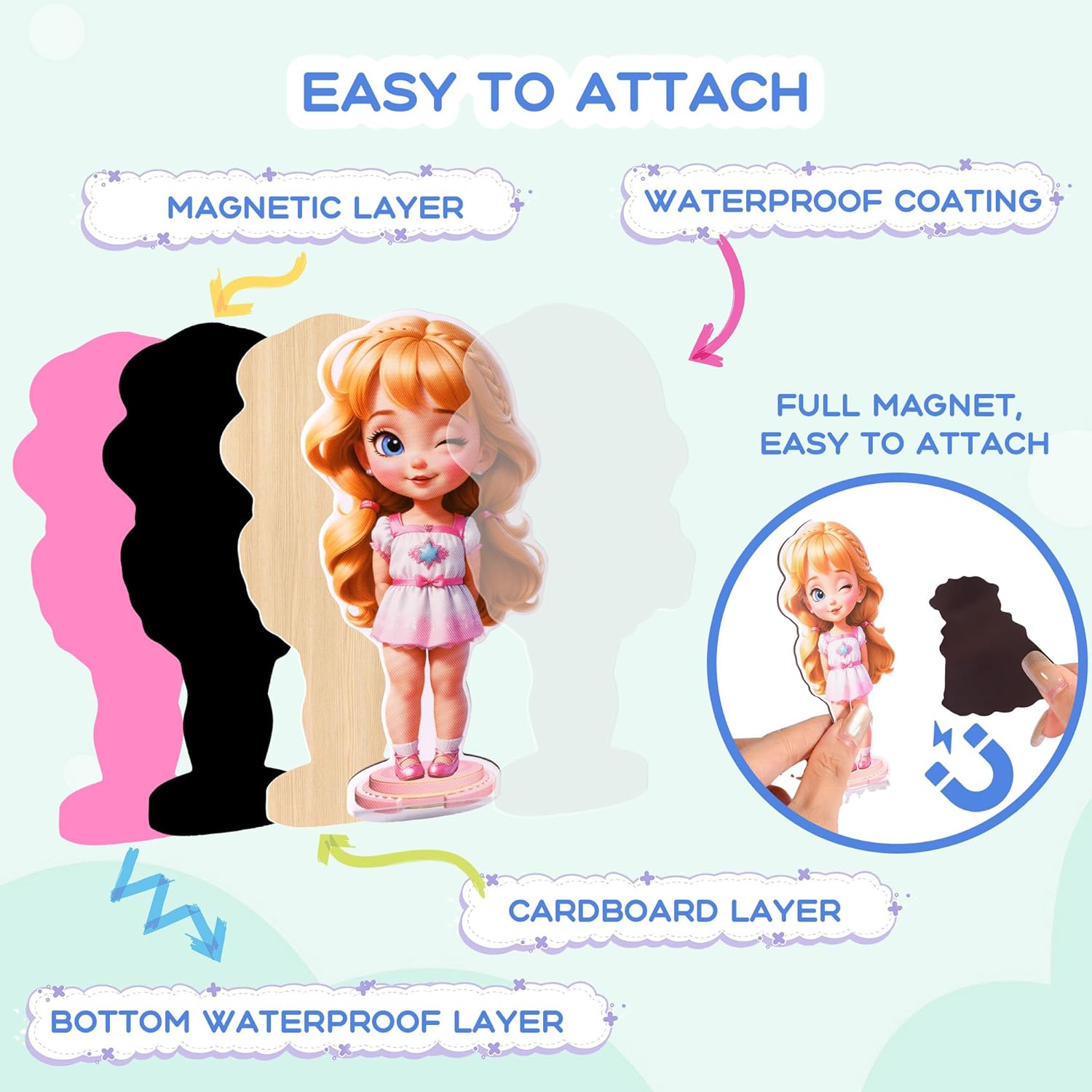 Reusable Magnetic Material: The doll is pressed from cardboard and a layer of soft magnet, designed to withstand frequent use without losing it’s magnetic grip, ensuring a long-lasting play experience