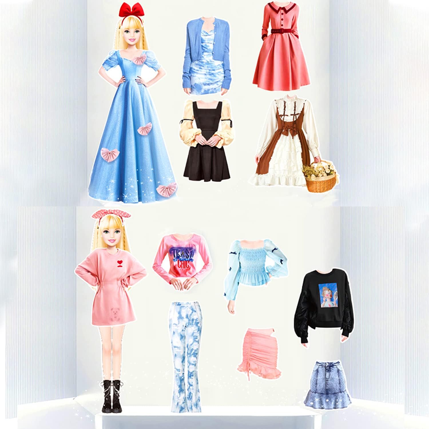 【Fun magnetic dress up toys】Magnetic dress up doll pretend play set, including a magnetic paper doll and tons of beautiful magnetic clothing and accessories, such as dresses, headwear, hats, bags, shoes. Can mix and match with each other to create different clothing styles and wonderful fashions, a must-have for little girls who like to dress up