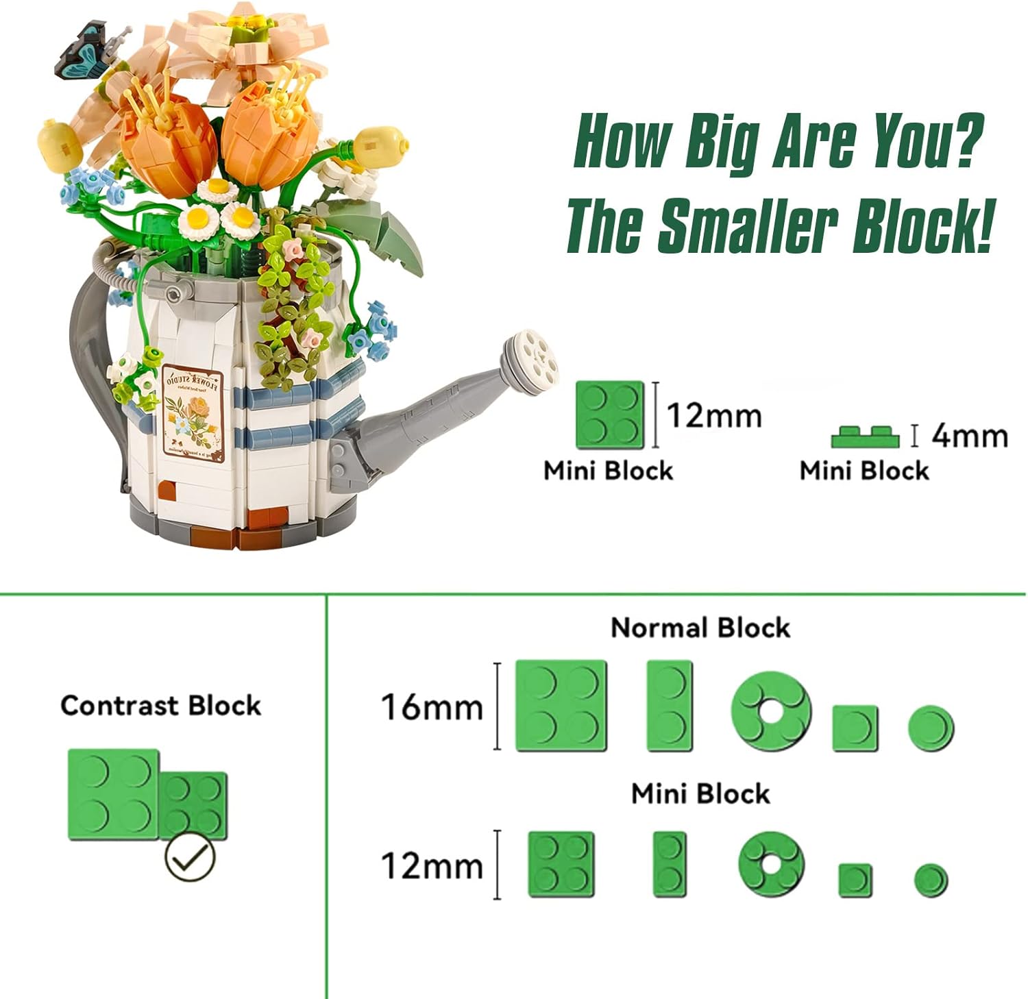 Watering can Cute Design : The Mini Building Blocks made from high-quality durable green material, great value, high level of detail. It is so realistic and cute.
