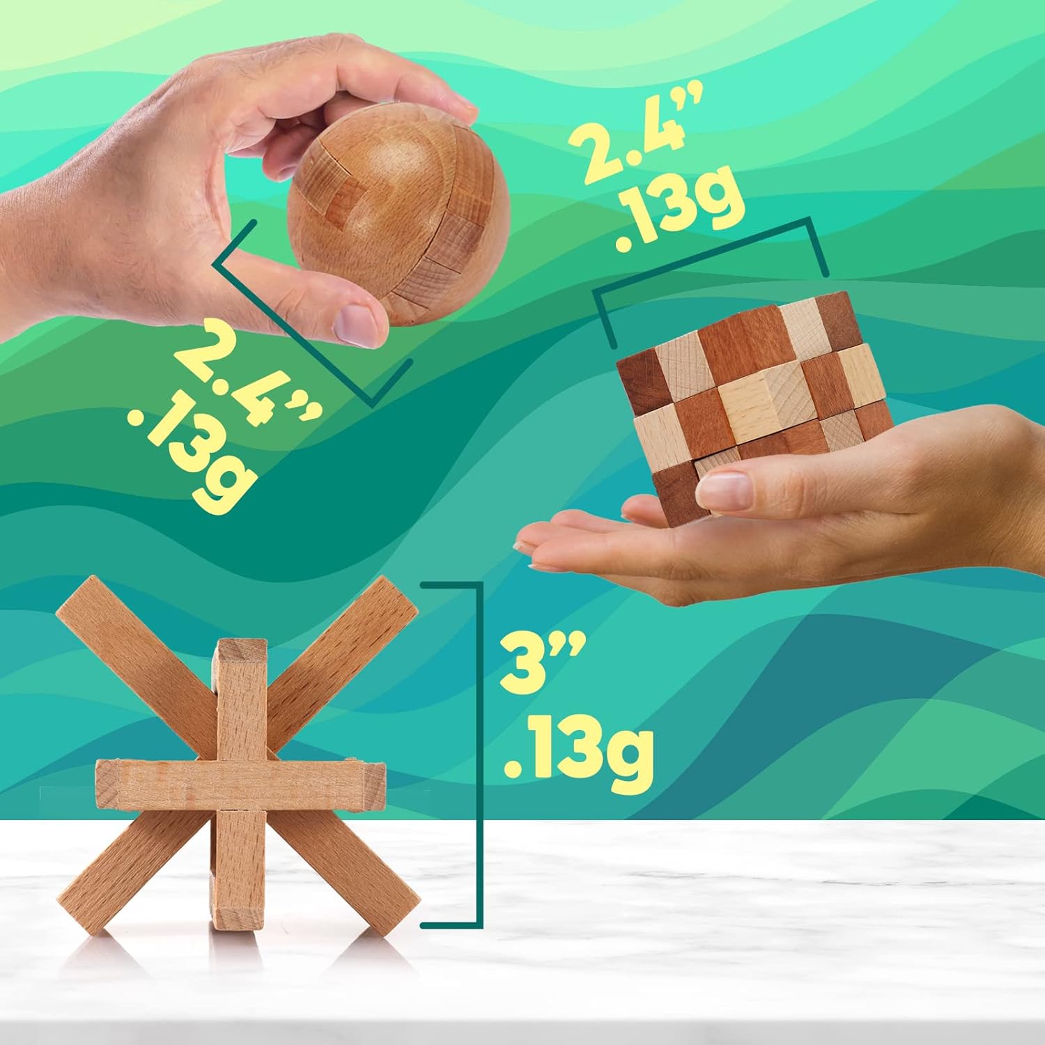 Safe and Heavy-duty: The wood puzzles are made of smooth and splinter-free birch and the coil puzzles are made of thick cast aluminum. These puzzles are child-friendly and long-lasting.