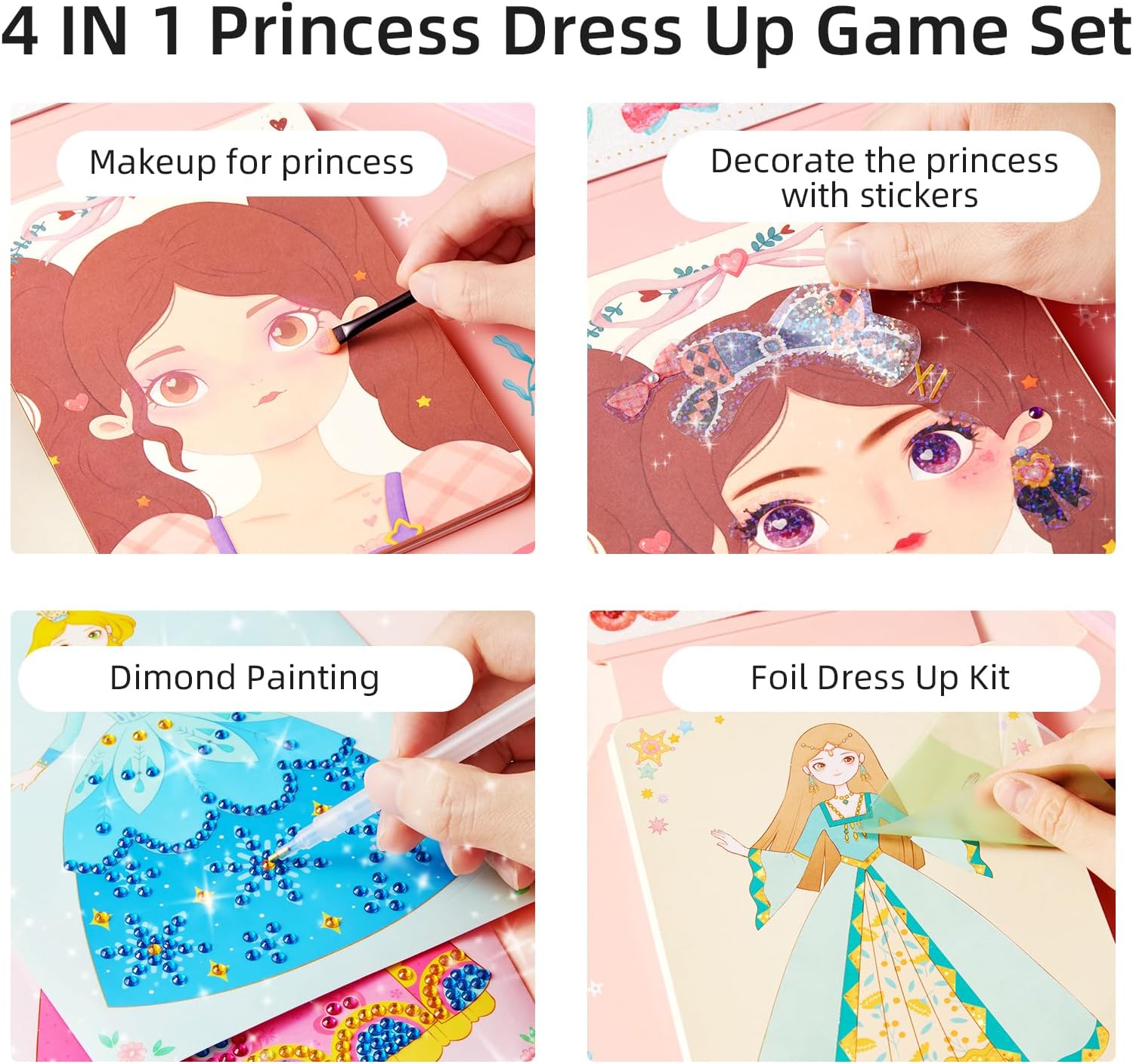 【Comprehensive Playset】Princess Fantasy Makeup offers a complete experience,encompassing makeup kit, fashion design, dimond painting and glowing foil stickers, providing endless creative opportunities for children.