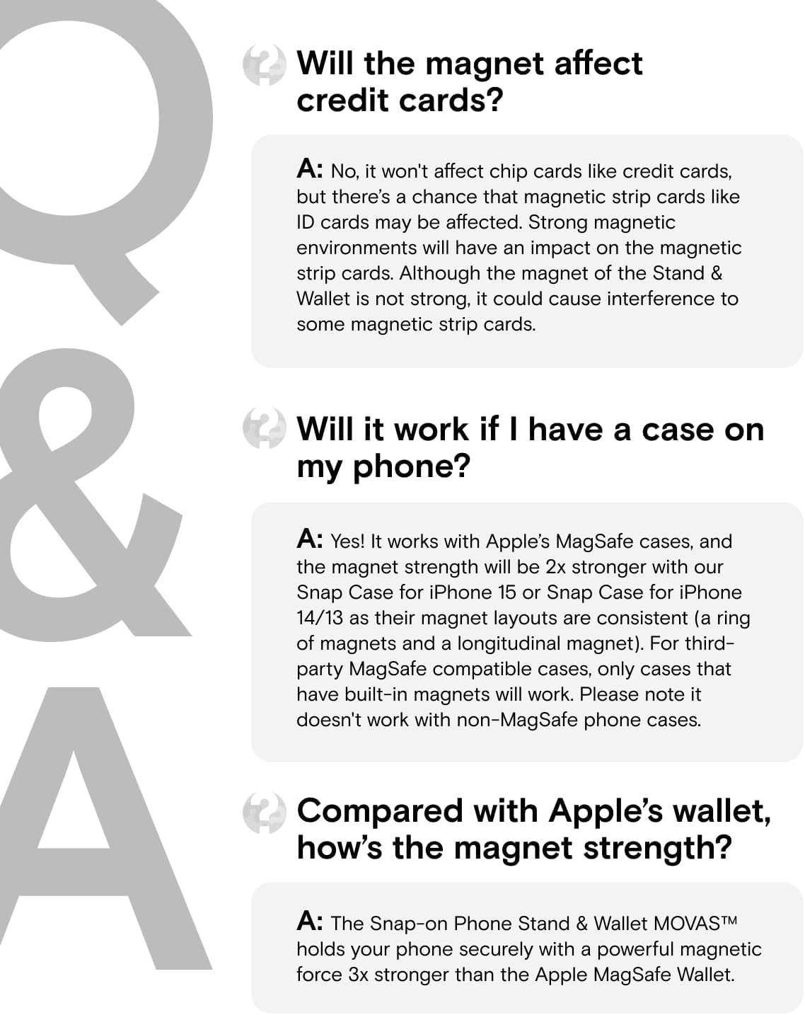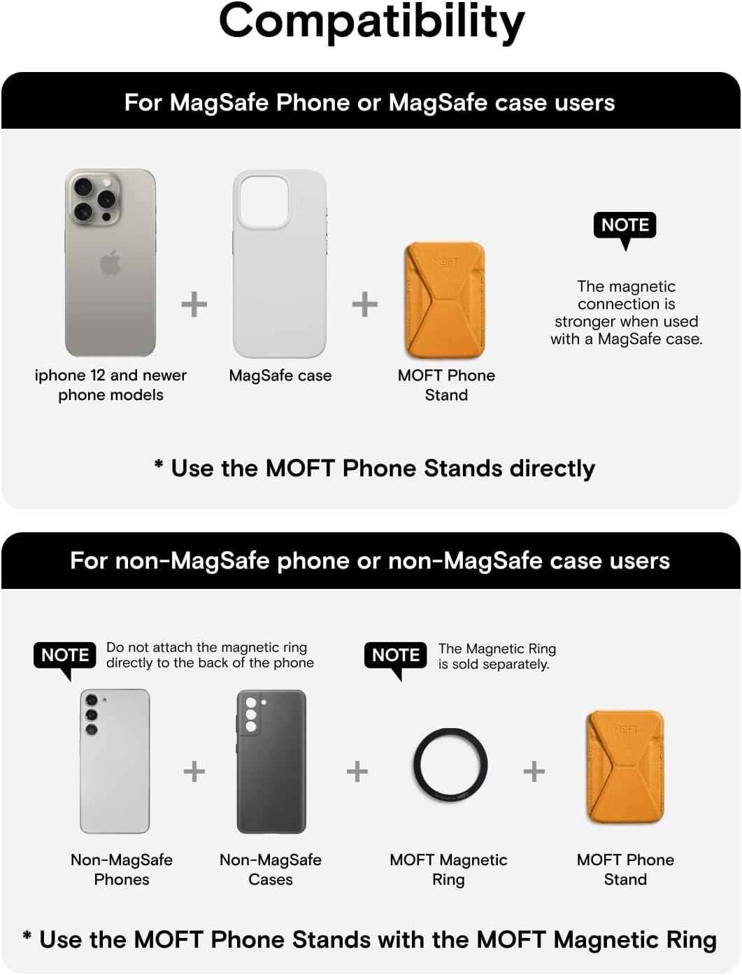 Strong Magnets – The slimmer MOVAS Leather allows for stronger magnets without adding bulk. MOFT magsafe wallet is compatible with iPhone 16/ iPhone 16 Plus/ iPhone 16 Pro/ iPhone 16 Pro Max / iPhone 15/ iPhone 15 Plus/ iPhone 15 Pro/ iPhone 15 Pro Max/ iPhone 14/ iPhone 14 Plus/ iPhone 14 Pro/ iPhone 14 Pro Max/ iPhone 13/ iPhone 13 mini/ iPhone 13 Pro/ iPhone 13 Pro Max/ iPhone 12/ iPhone 12 mini/ iPhone 12 Pro/ iPhone 12 Pro Max and MagSafe Phone cases