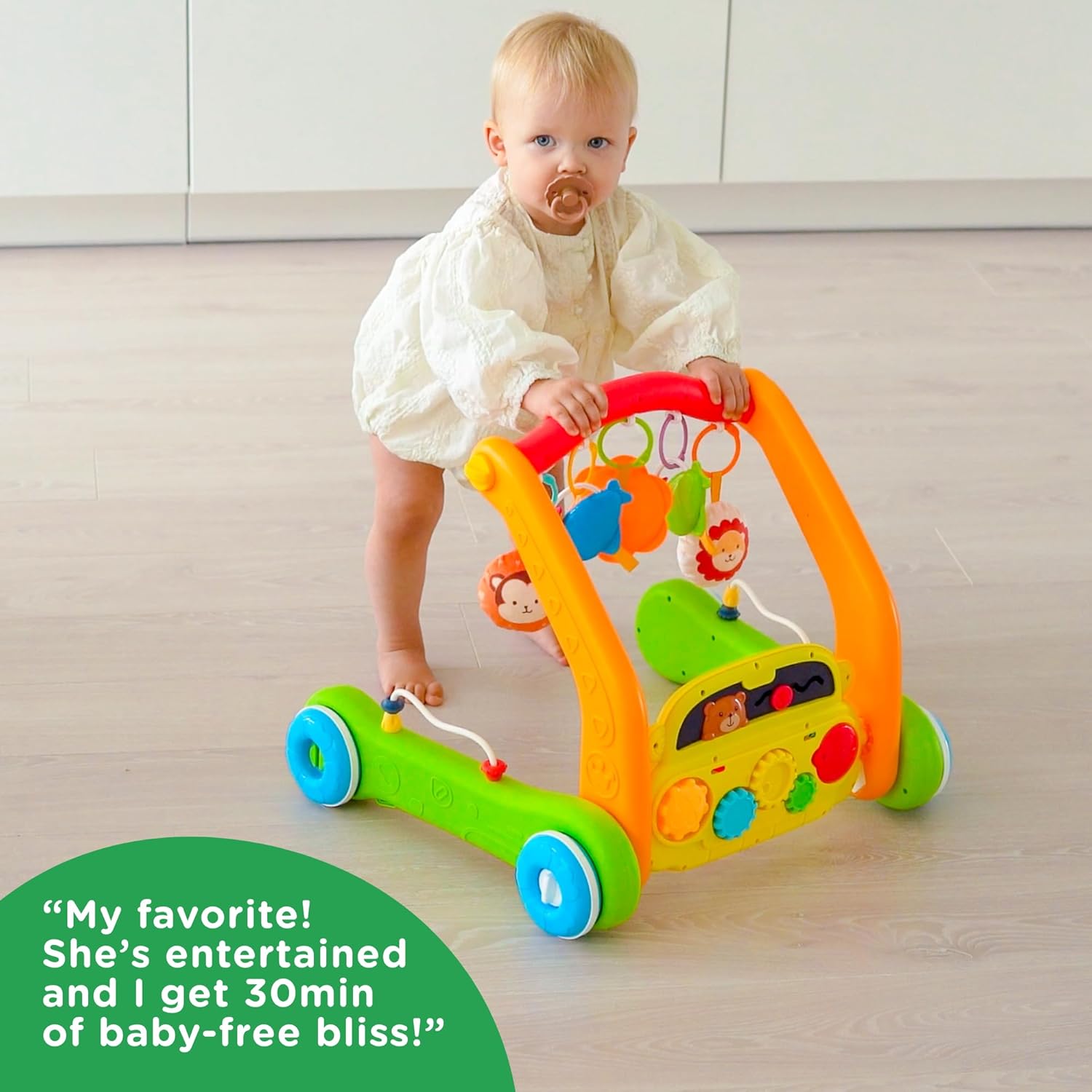 4 WAYS TO PLAY – Tummy time, sit and play, learn to walk, and take along. From tummy time to mini-marathoner, this toy grows with your baby!