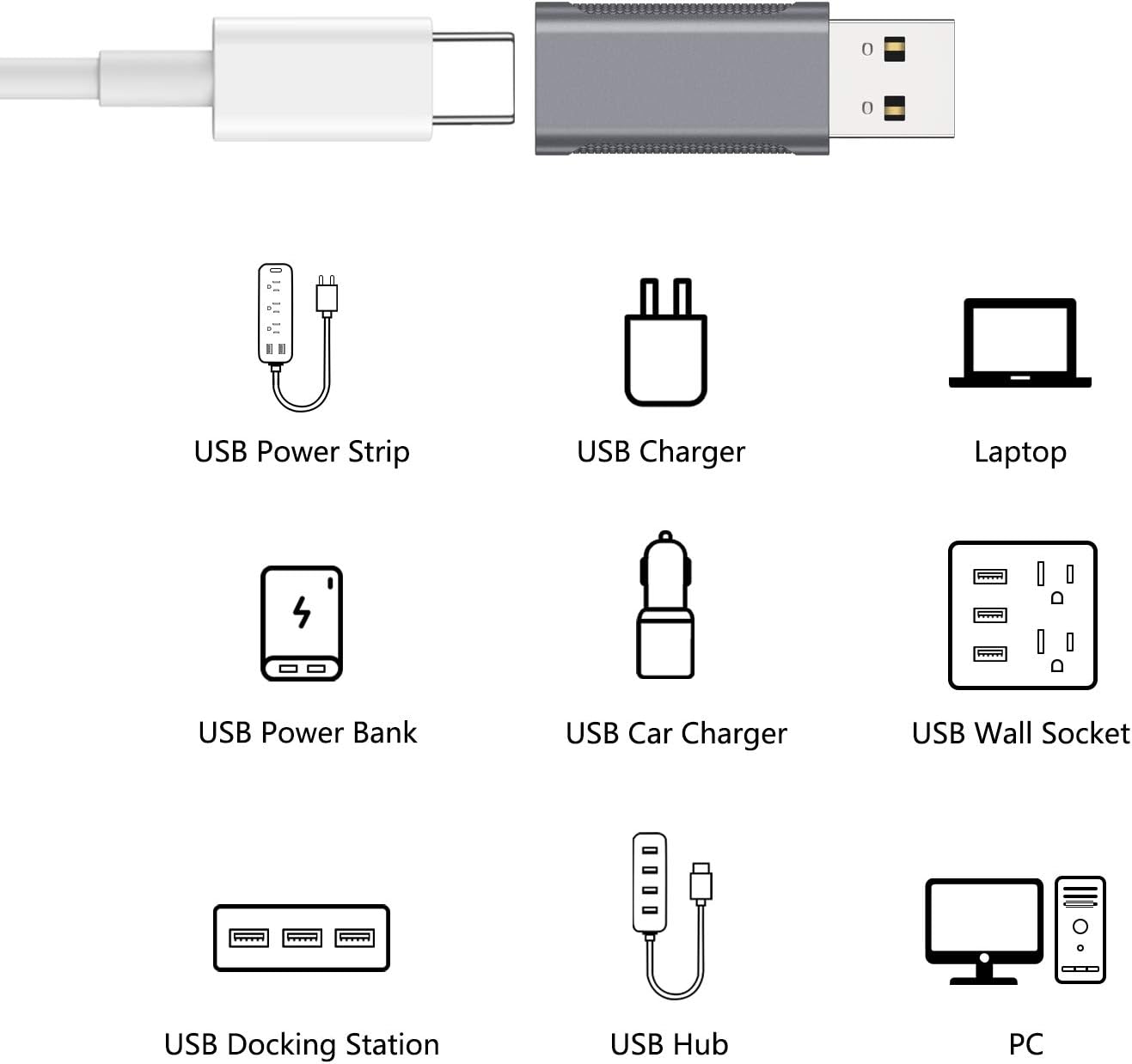 Compatible with a wall charger, docking station, power bank, car charger with USB-A port.