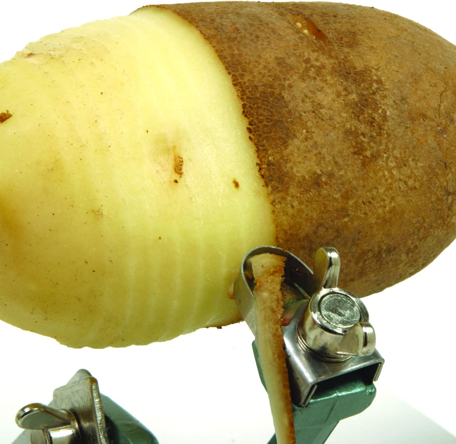 Norpro APPLE MASTER 866-Capable of 3 separate functions: pare, core and slice; pare only; or slice and core only. Features a stay-sharp, deluxe stainless steel blade. Vacuum base holds securely to any smooth surface. Includes a deluxe paring and slicing/coring blade. Also ideal for potatoes and pears. Not just for apple paring, coring and slicing use the Norpro Apple-Mate® and Apple-Master® to create curly fries, chips-on-a-stick using russets or sweet potatoes. Scallop potatoes. Quickly create onion twists to deep fry, make french onion soup or to garnish a steak or hamburger. Core and slice pears for dessert. Recipes and instructions included. Hand washing recommended.