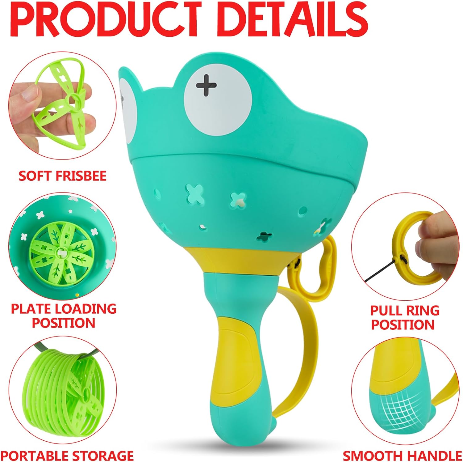 【100% SAFE OUTDOOR TOYS】This outdoor flying toy for 5-7-year-olds is made of 100% safe ABS material. The disc launcher toy is CPSC-certified in the USA, non-toxic, BPA-free, and phthalate-free. The launcher’s pull ring features anti-pinch design for a secure grip, preventing slippage and ensuring a safe gaming experience.