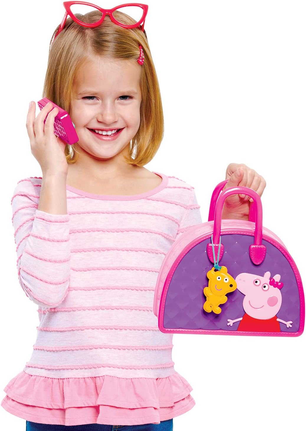 Carry Peppa Pig’s Pink and Purple Purse: The Peppa Pig Bag Set has everything toddlers need for dress-up and pretend play on-the-go.