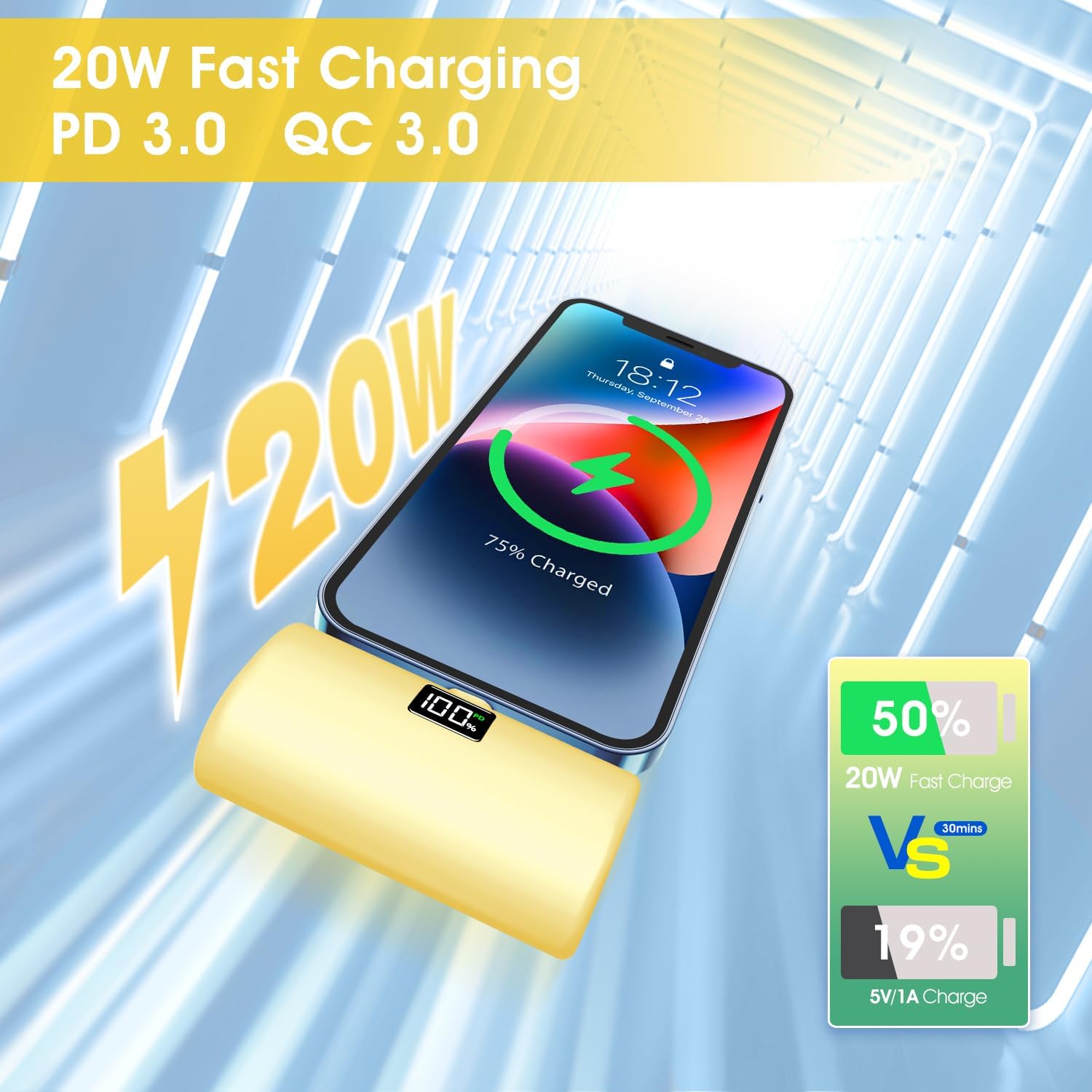 Fast Charging Power Bank – Prepare to be amazed by the blazing-fast 20W charging powerbank! Reach a stunning 50% charge for iPhone with JEJILL mini power bank in just half an hour, leaving other battery banks in the dust. Enjoy an impressive 400% faster charging speed than ordinary portable charger, ensuring you’re always ahead of the curve.