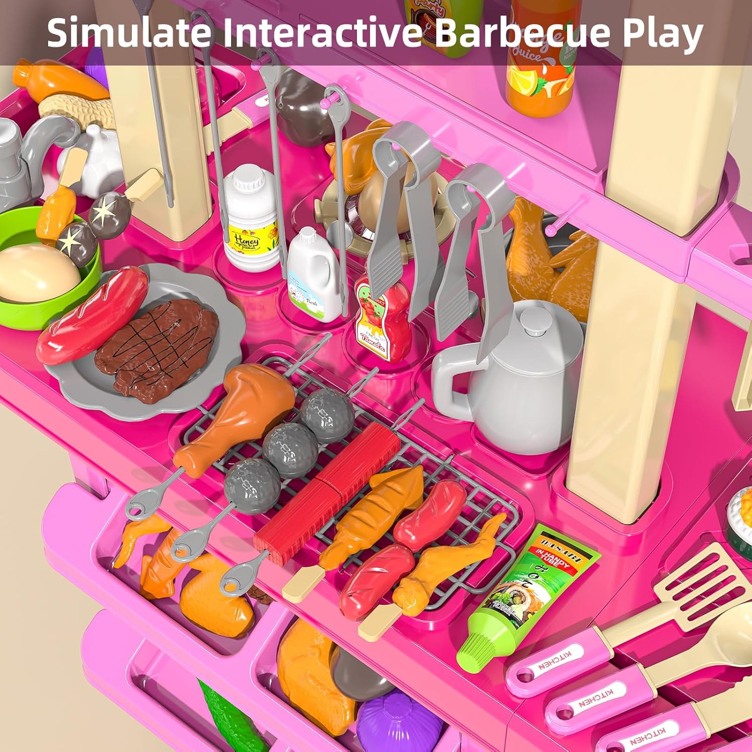 Kitchen Playset Toys: The pretend play for toddlers 1-3 includes all kinds of toy accessories and kitchen appliances: play stove, toy dishes, barbecue toy, and other accessories and kitchen toys for toddlers. An educational toys for 2+ year old