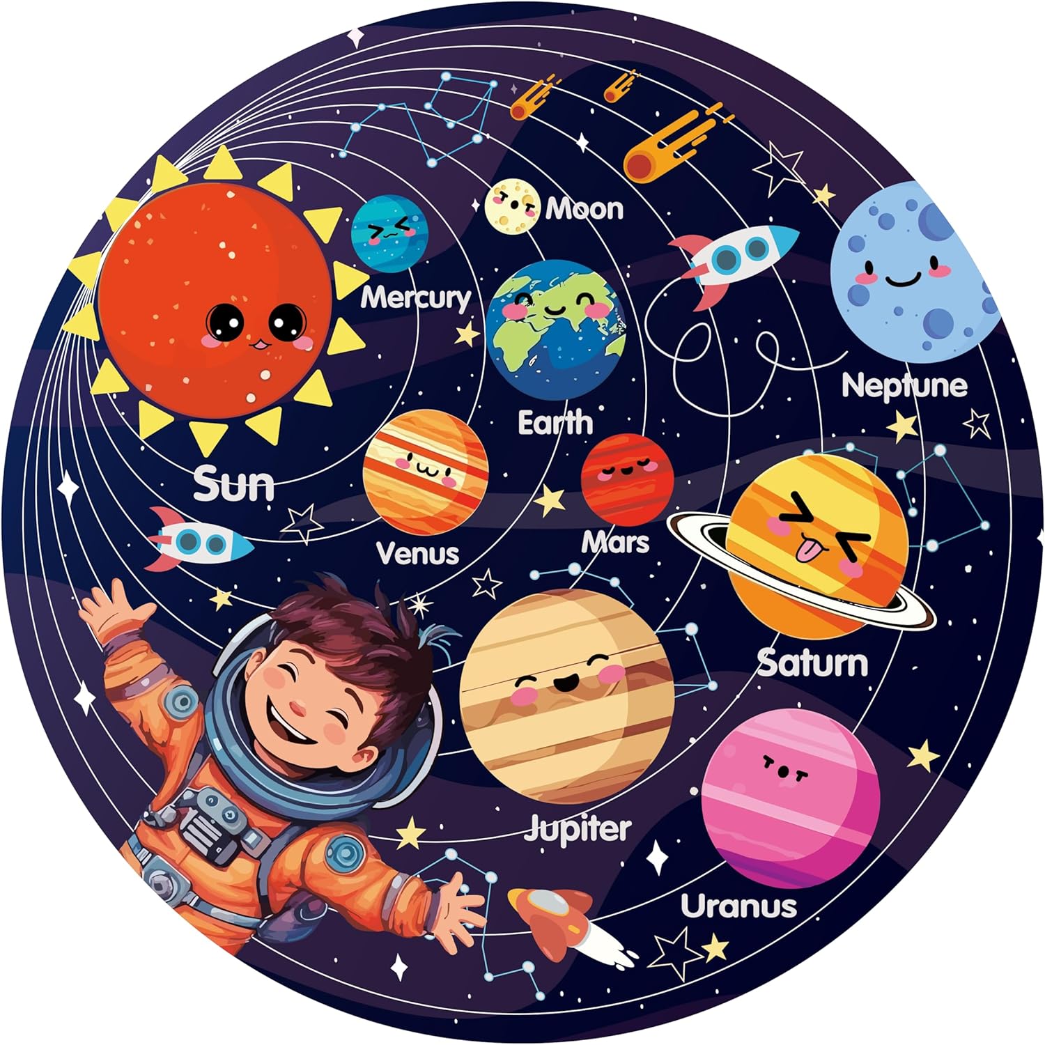 Educational and fun – This space large 70 piece round floor puzzle is a perfect educational tool that combines learning and fun. With vibrant and detailed images of the solar system planets, this puzzle helps children gain a better understanding of outer space and the planets. It’s a high-quality puzzle for kids ages 4-8