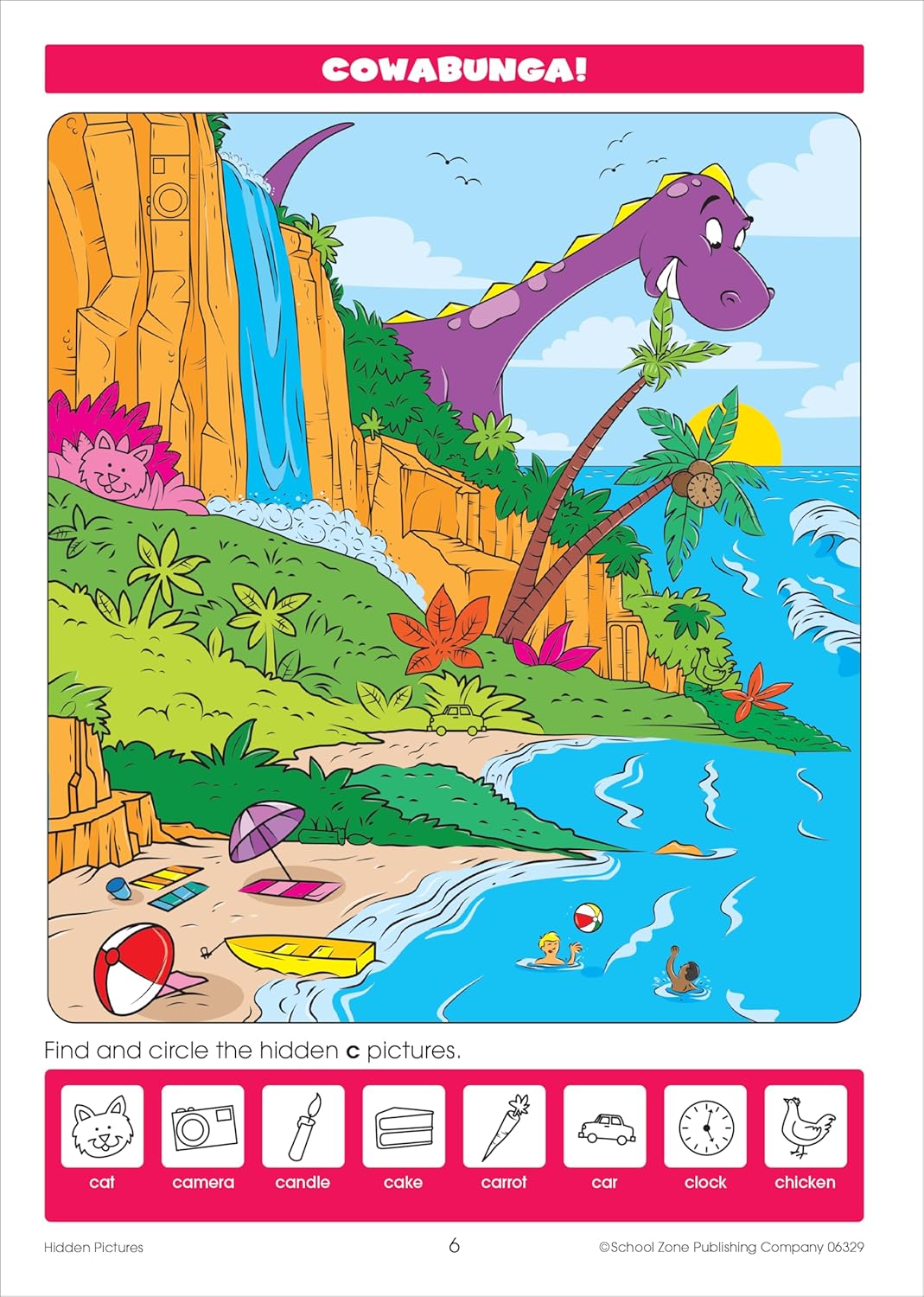 COMPREHENSIVE SKILL-BUILDING: Big Hidden Pictures & More Workbook is packed with colorful lessons that will keep your child thinking! This proven activity workbook will help prepare your child for success by using hidden pictures, mazes, games, puzzles, and color-by number! First and second graders will enjoy a hidden picture for each letter of the alphabet. MAKES LEARNING FUN: 300+ colorful, kid-friendly illustrations playfully get kids’ attention and reinforce the essential lessons. Activities have a game-like feel that keeps kids motivated. PORTABLE & CONVENIENT: The large 8” x 11” format with durable glossy cover and perforated pages for easy tear-out worksheets make this workbook great for home, classroom, or on-the-go learning! PROMOTES CONFIDENCE & INDEPENDENCE: Easy directions, visual clues, and lessons that build on one another promote self-directed learning. Since the skill being practiced is listed at the bottom of each page, it’s easy to keep track of what kids have learned! DEVELOPED IN THE USA: School Zone learning materials have helped educate three generations of kids, creating lifelong learners, and it all takes place here in the USA. Digital content, flash cards, workbooks, readers, and games―all are crafted through a child’s eyes, with teacher guidance and parent approval.