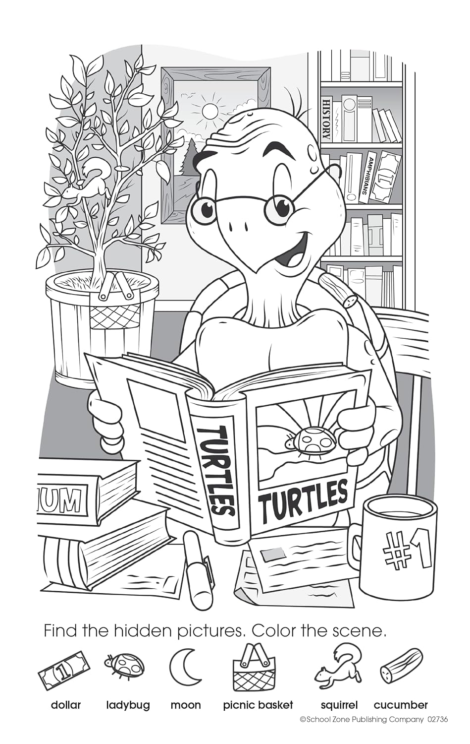 48 hidden picture pages For ages 4-65.313″ x 8.5″ pages with sturdy backing that creates a writing surface Top bound pad with easy-tear pages for individual worksheets Each page features a challenging, confidence-boosting hidden picture puzzle Kids can first locate the hidden objects, then color the entire picture Detailed illustrations spark the imagination and help with focus Portable and perfect for on-the-go learning!