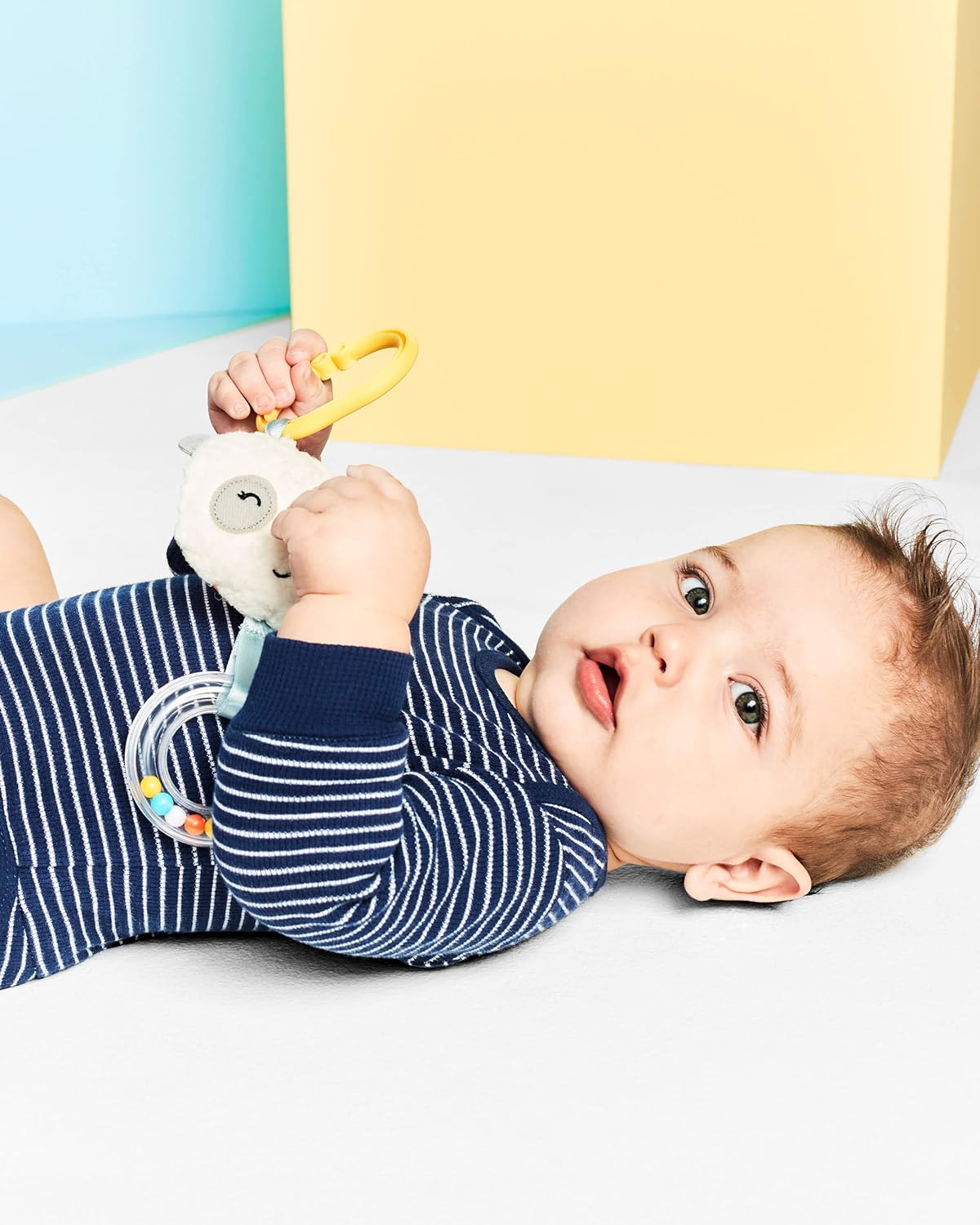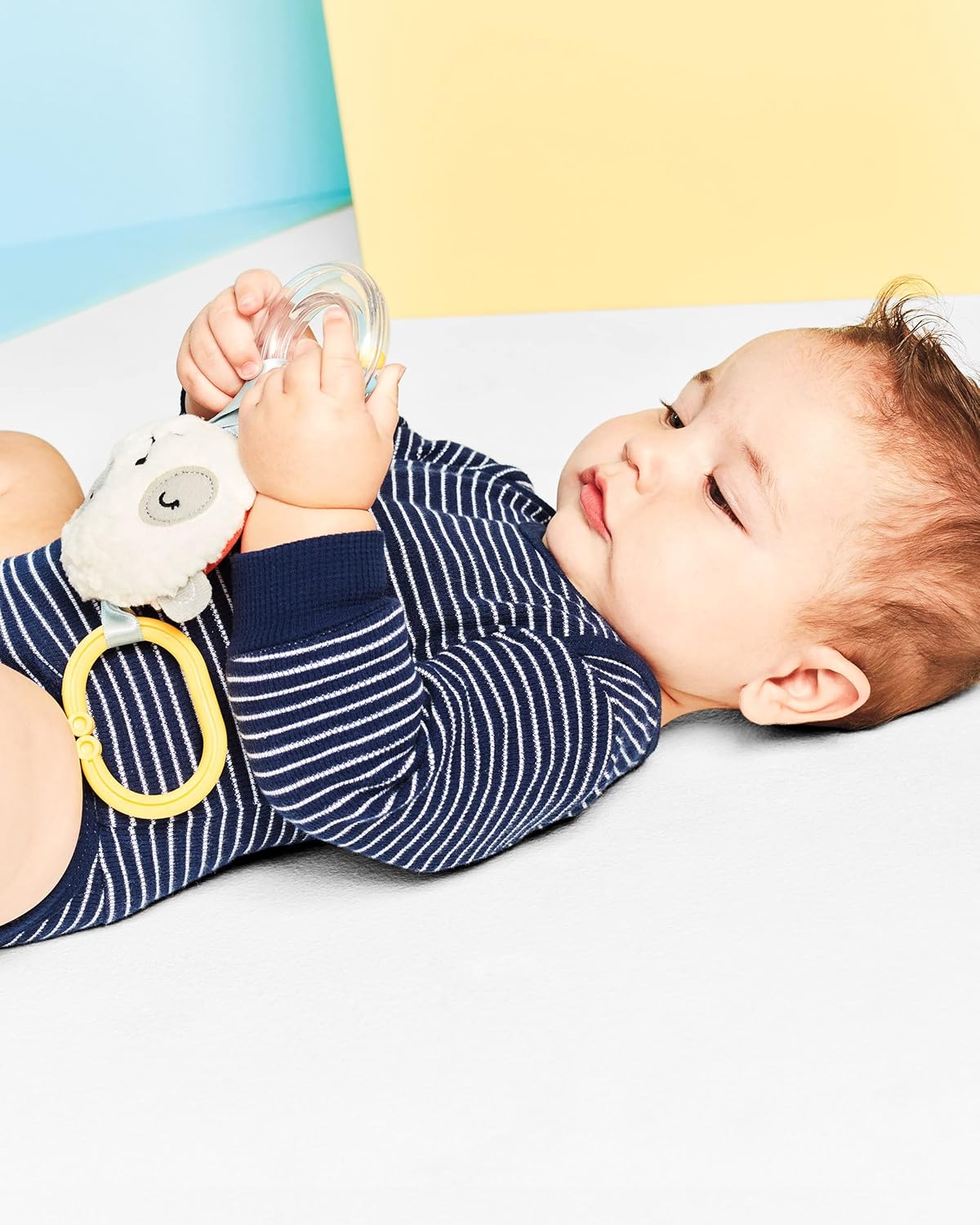 Keep baby busy and happy on the go with our adorable baby stroller toy set. Featuring three sweet animal friends, each toy includes soft sherpa texture with an assortment of sounds, teething surfaces and more for baby to explore. The included toy rings make it easy to attach to strollers, diaper bags and more.
