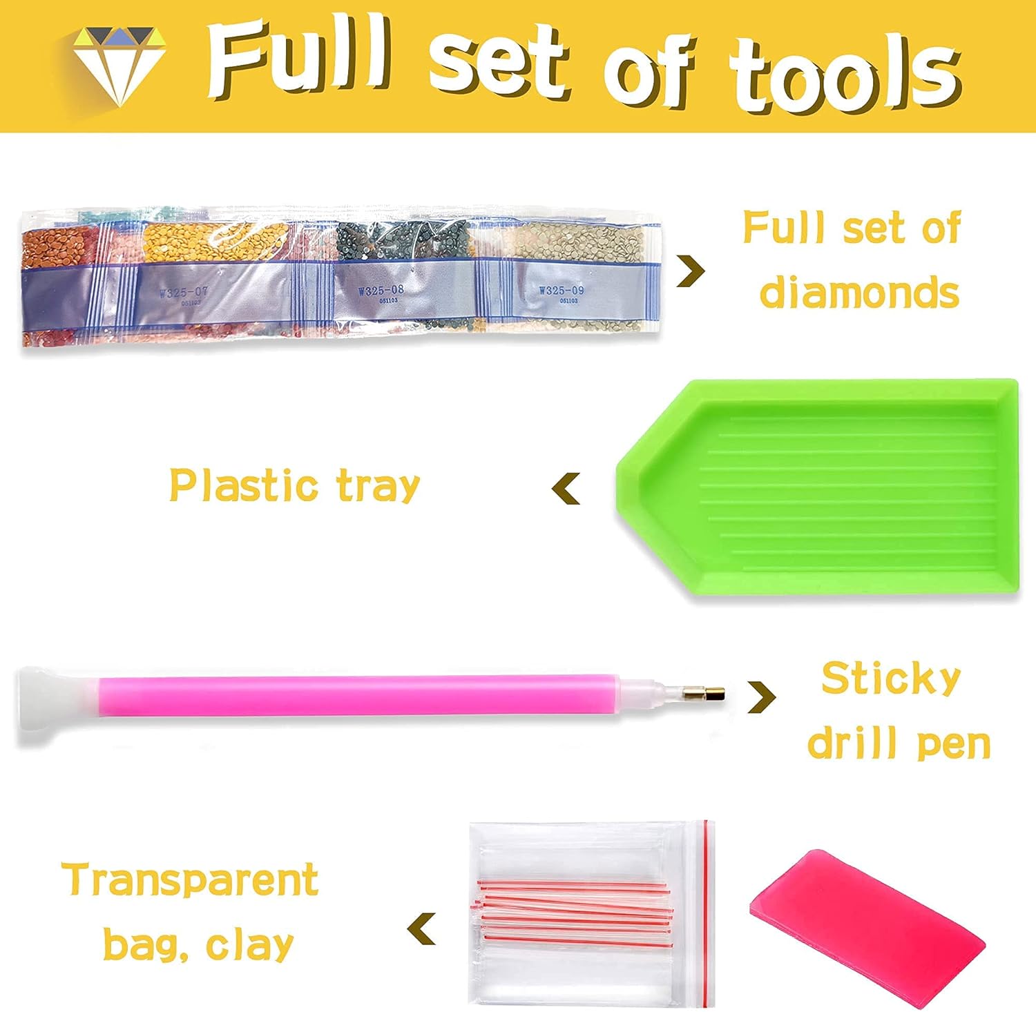 Captivating Diamond Design: Unveil the beauty of our 5D diamond drawing toolkit with a mesmerizing Complete Diamond Design. Carefully selected exquisite pictures showcase a radiant display of 17 square parts forming a round diamond, creating a brilliant, colorful, and sparkling masterpiece. Our toolkit outshines the competition, providing an unparalleled luminosity.