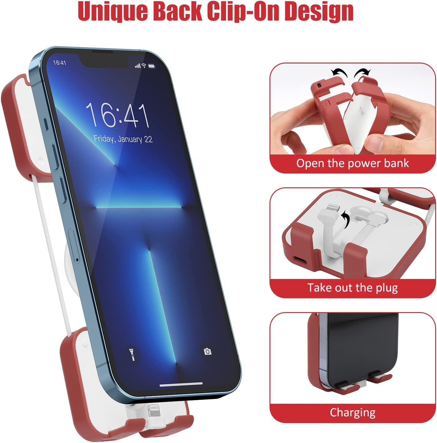 Unique Back Clip-on Design: The back clip portable charger that allows you to easily use your phone with one hand. The stylish portable external battery pack sets you apart.