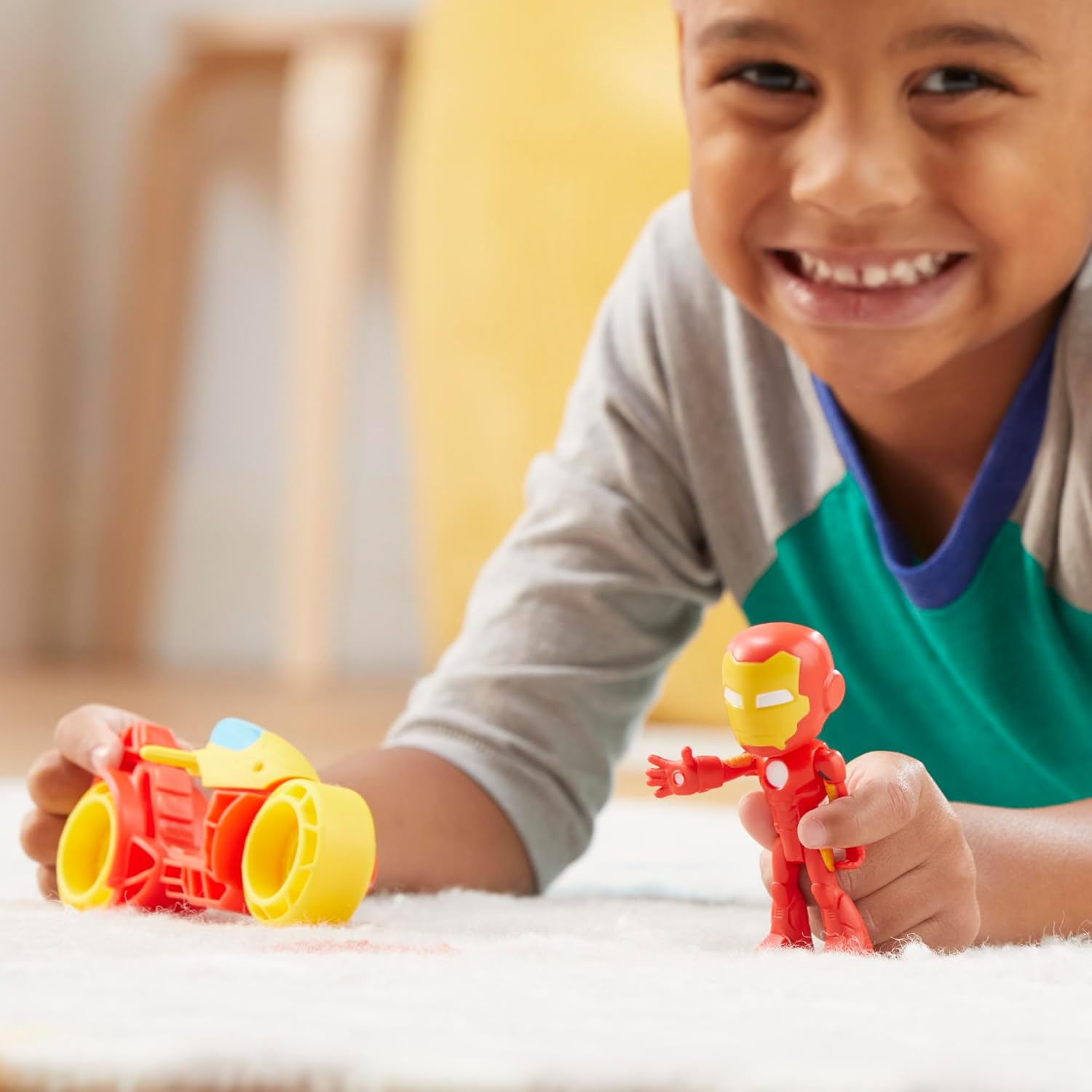 SUPER HERO FIGURE AND MOTORCYCLE: This Spidey and His Amazing Friends toy playset comes with an Iron Man action figure and super cool motorcycle toy