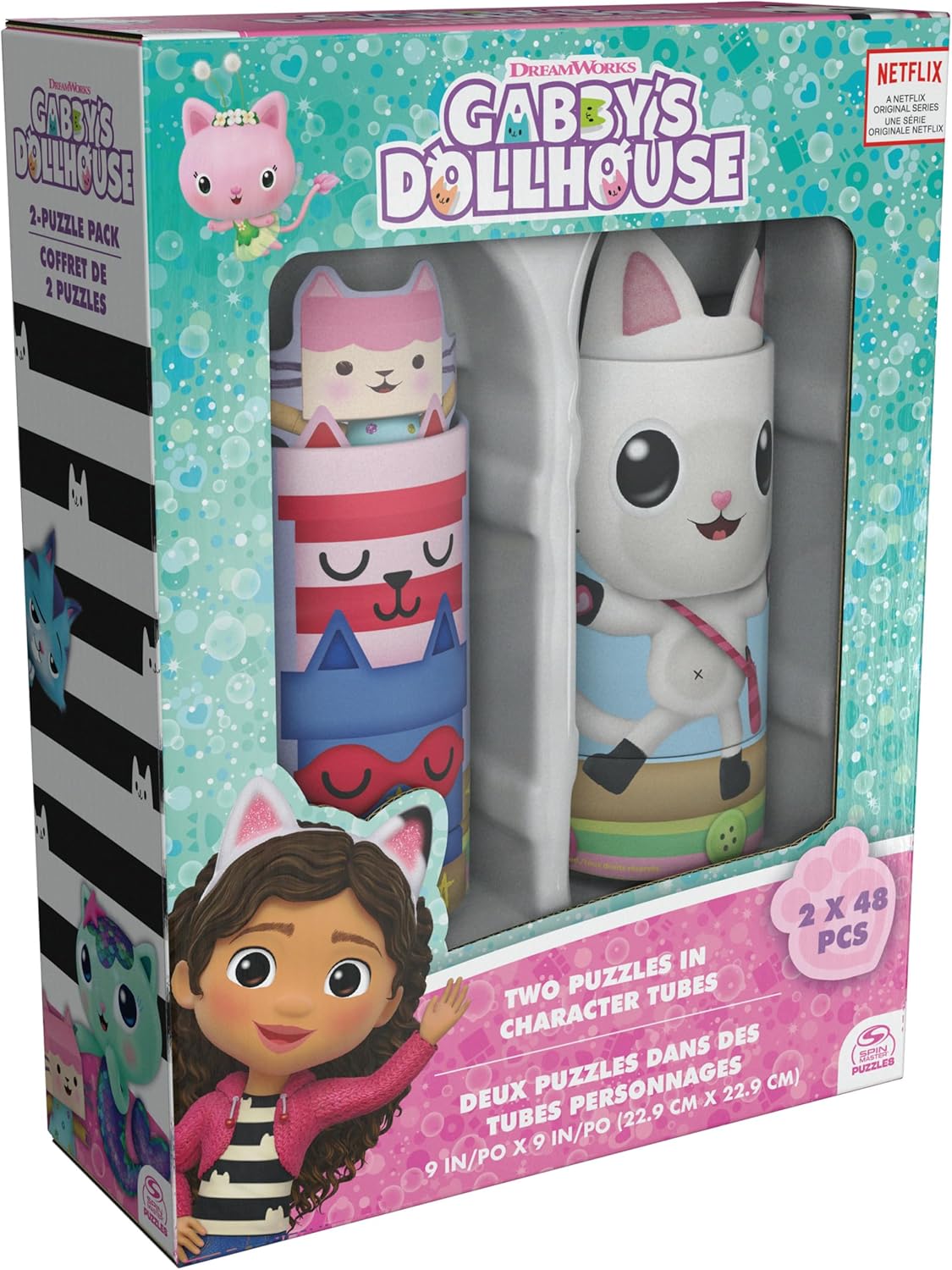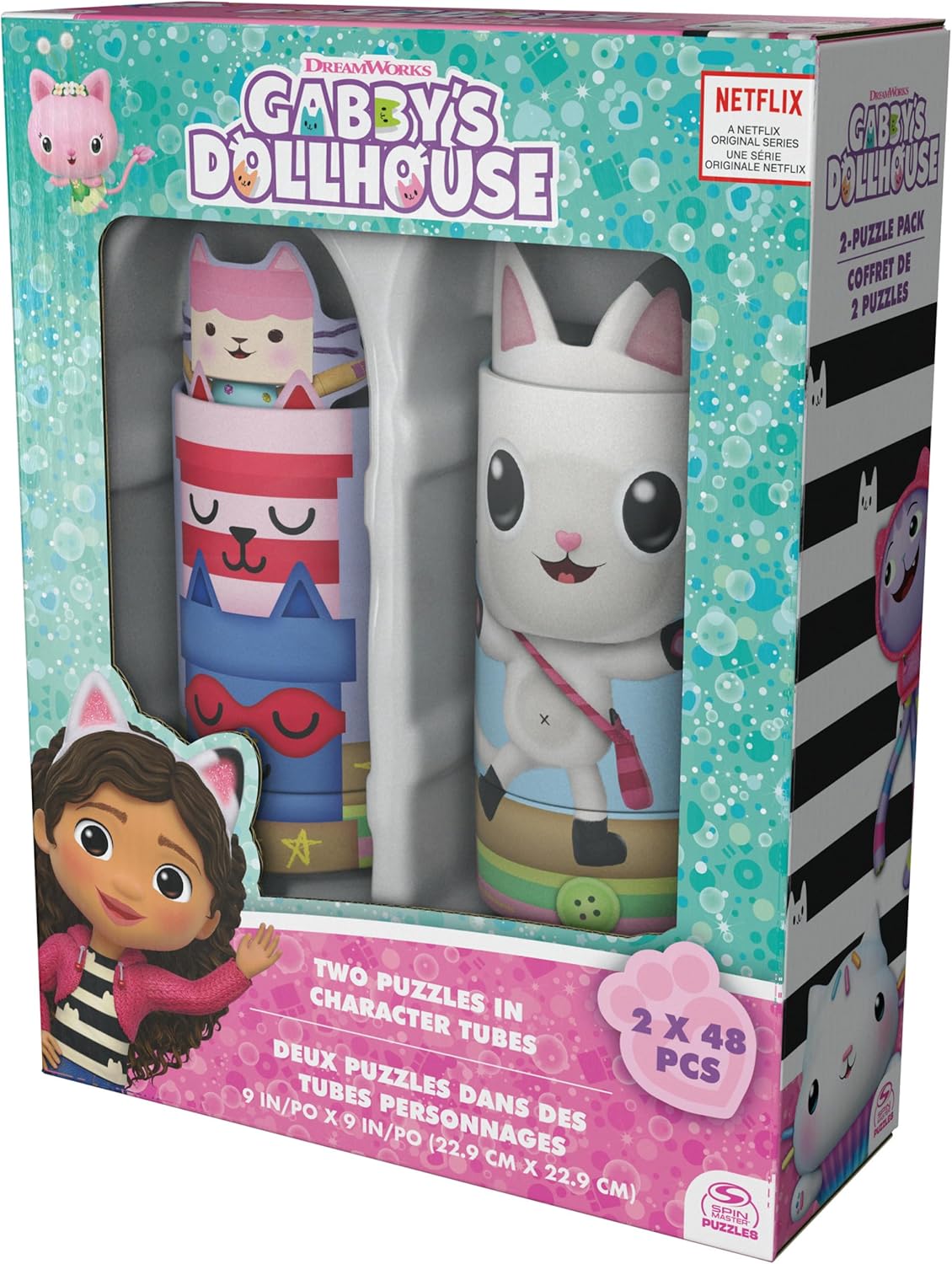 2 PUZZLE TUBES: Get a great value with these 48-piece kids puzzles from Gabby’s Dollhouse. Whimsical tube packagi1ng brings the characters to life and provides an easy storage solution