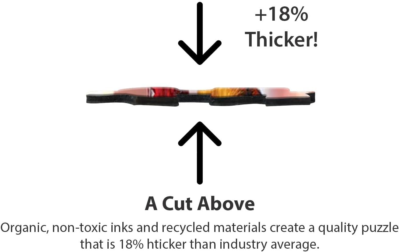 Organic, non-toxic inks and recycled materials create a quality puzzle that is 18% thicker than indsutry average.