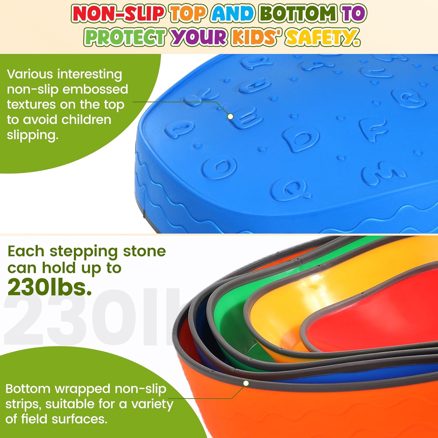 RUGGED, DURABLE & NON-SLIP DESIGN – We use non-toxic, odourless and healthy PP material, which is safe for kids to use. With a maximum weight capacity of 230lbs, it is suitable for kids over three years old and adults to play. Each balancing stone has a different texture on top to prevent kids from slipping. The bottom is wrapped with non-slip rubber, which can be used both indoor and outdoor. Can be played at home, park, floor, carpet, grass, beach.