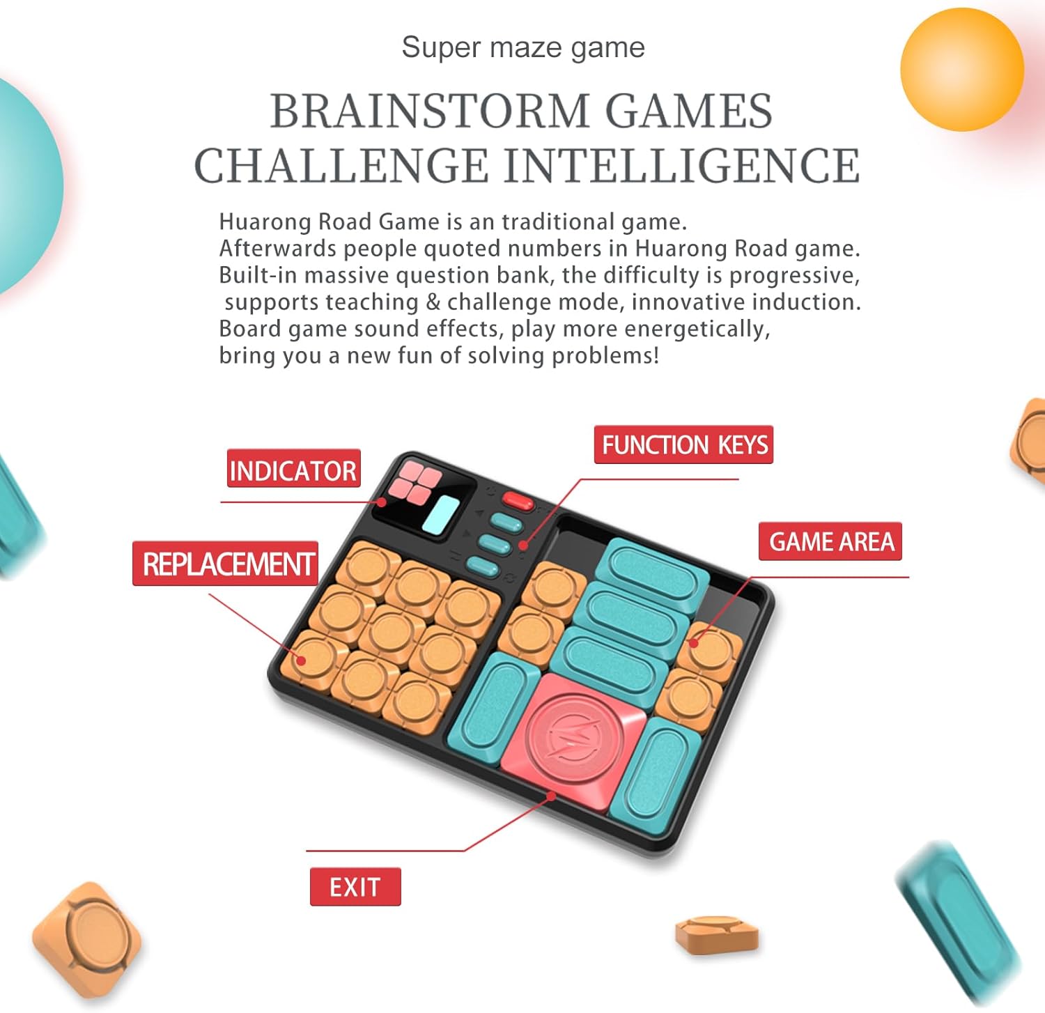【WINNING METHOD】According to the graphics displayed on the LED screen, slide the blocks and finally move the red block to the designated position at the bottom.