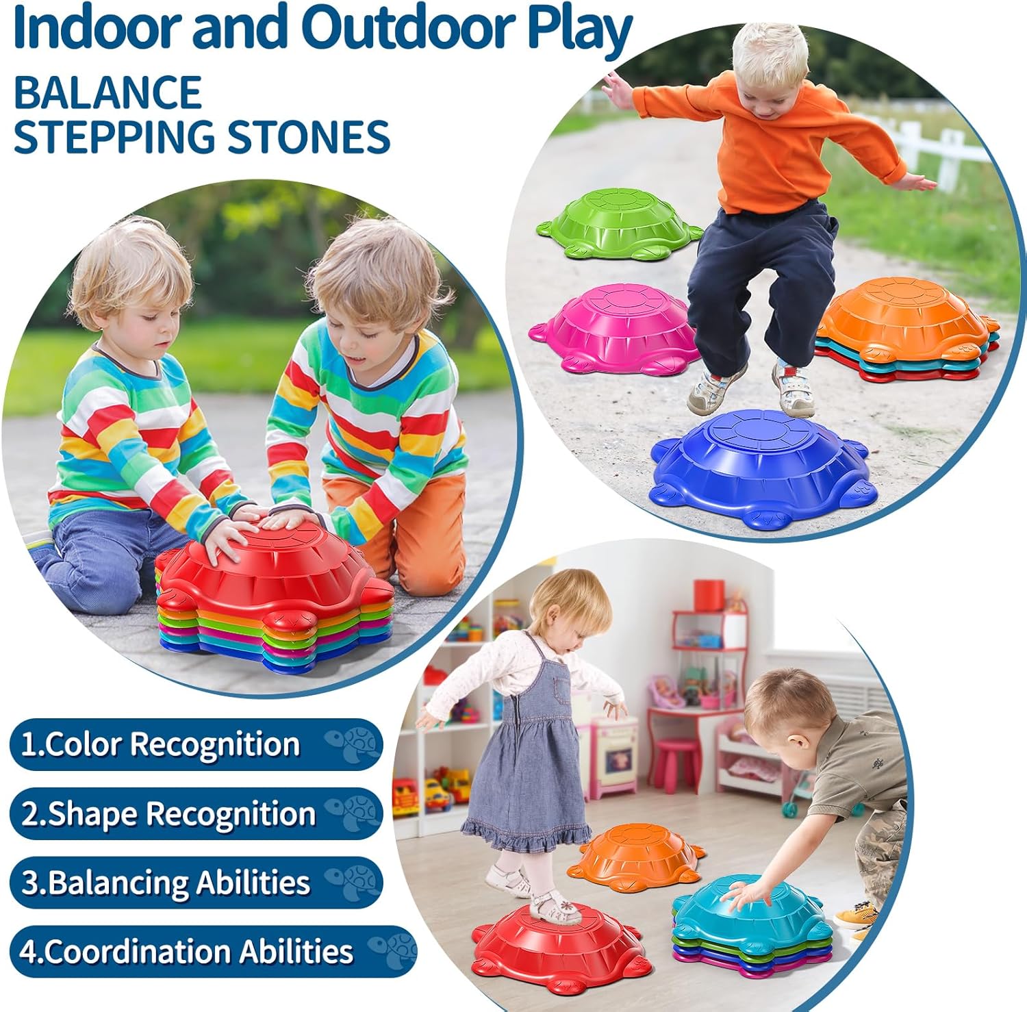 Design for Kids to Play: Children outdoor play equipment for kids 3,4,5,6 year old can support the weight 195 lbs/88.5 kg. The balance stepping stones toys use the design of the non-slip steps, surface pattern and rubber foot pads. Kids exercise toys let kids enjoy the fun of game.