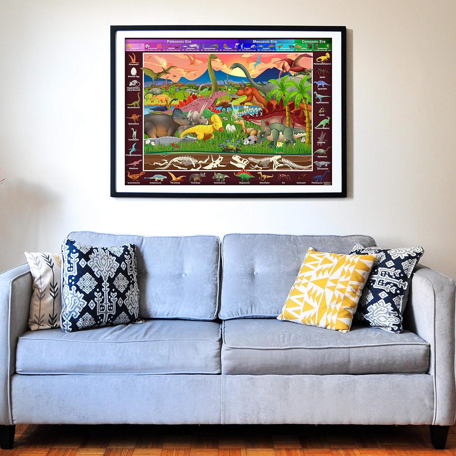 【Educational】 – Great colorful puzzle to stimulate Kid’s ( 3rd, 2nd, 1st Grade, Kindergarten, PreK ) interests in Giant Dinos such as T Rex, Triceratops, Stegosaurus, Velociraptor, Diplodocus & Pterodactyl. The puzzle also identifies each of the dinosaurs and it also features a timeline showing the evolution of life on this planet through the Paleozoic, Mesozoic and Cenozoic Era. By reading interesting facts printed on the box, students can learn about the meaning of dinosaur names.