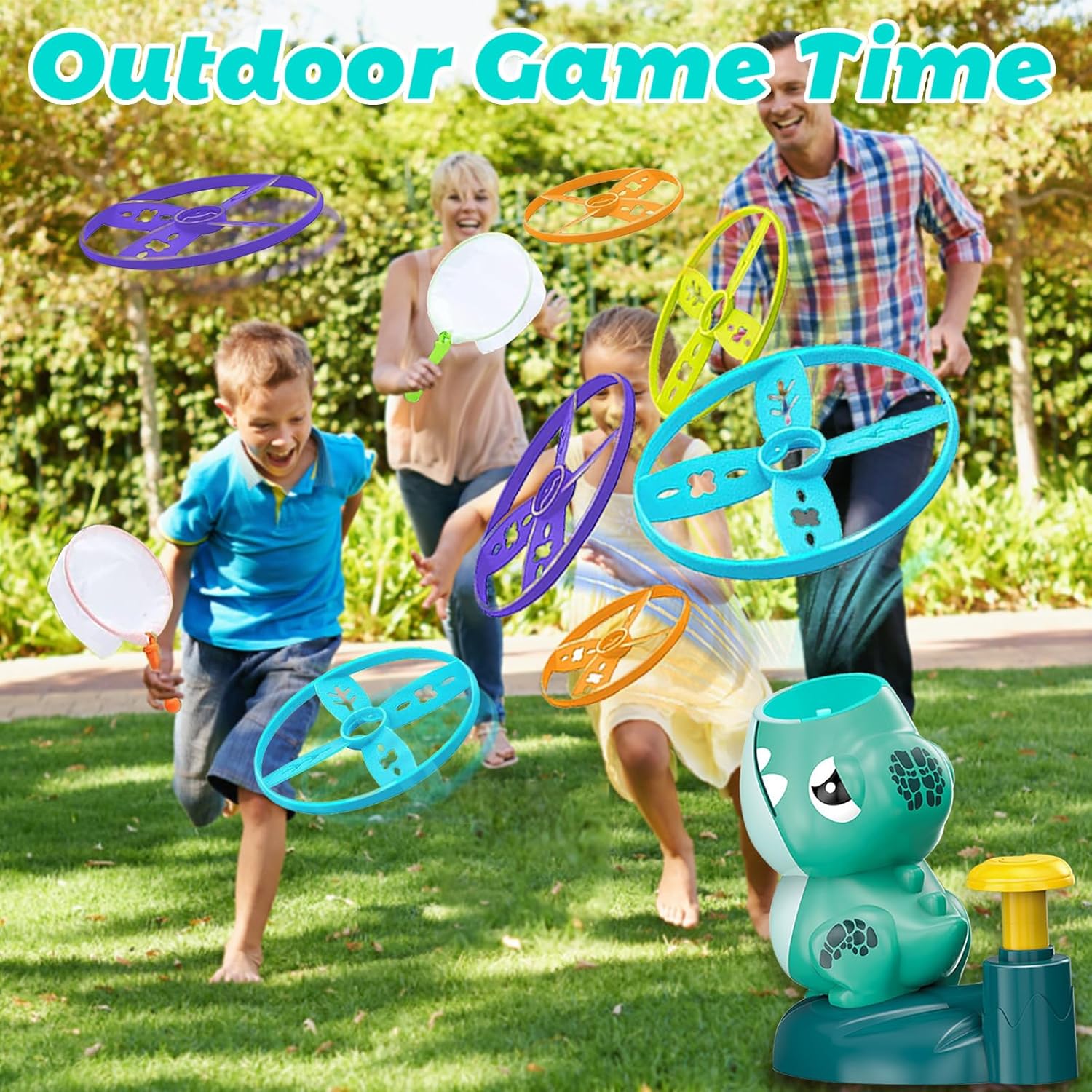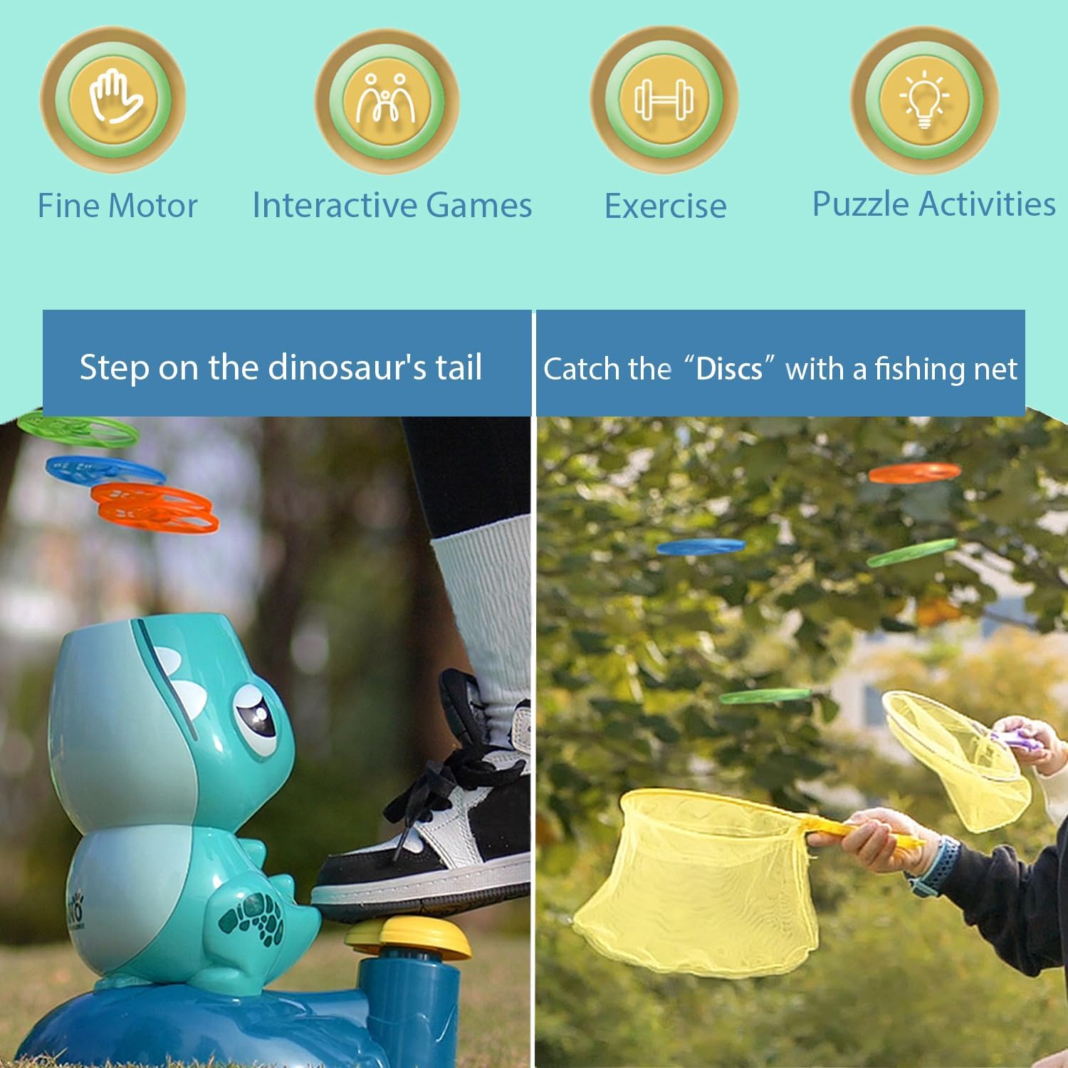 【Outdoor Toys for Kids Ages 3-5】Our outdoor toys feature an sports design, elephant themed launcher, 8 spinning flying disc and 2 chasing nets that catch the disc, providing a fun and active way for 3 4 5 6 7 8+ year olds boys girls to exercise and participate in sports activities, kid powered launch and outdoor fun.