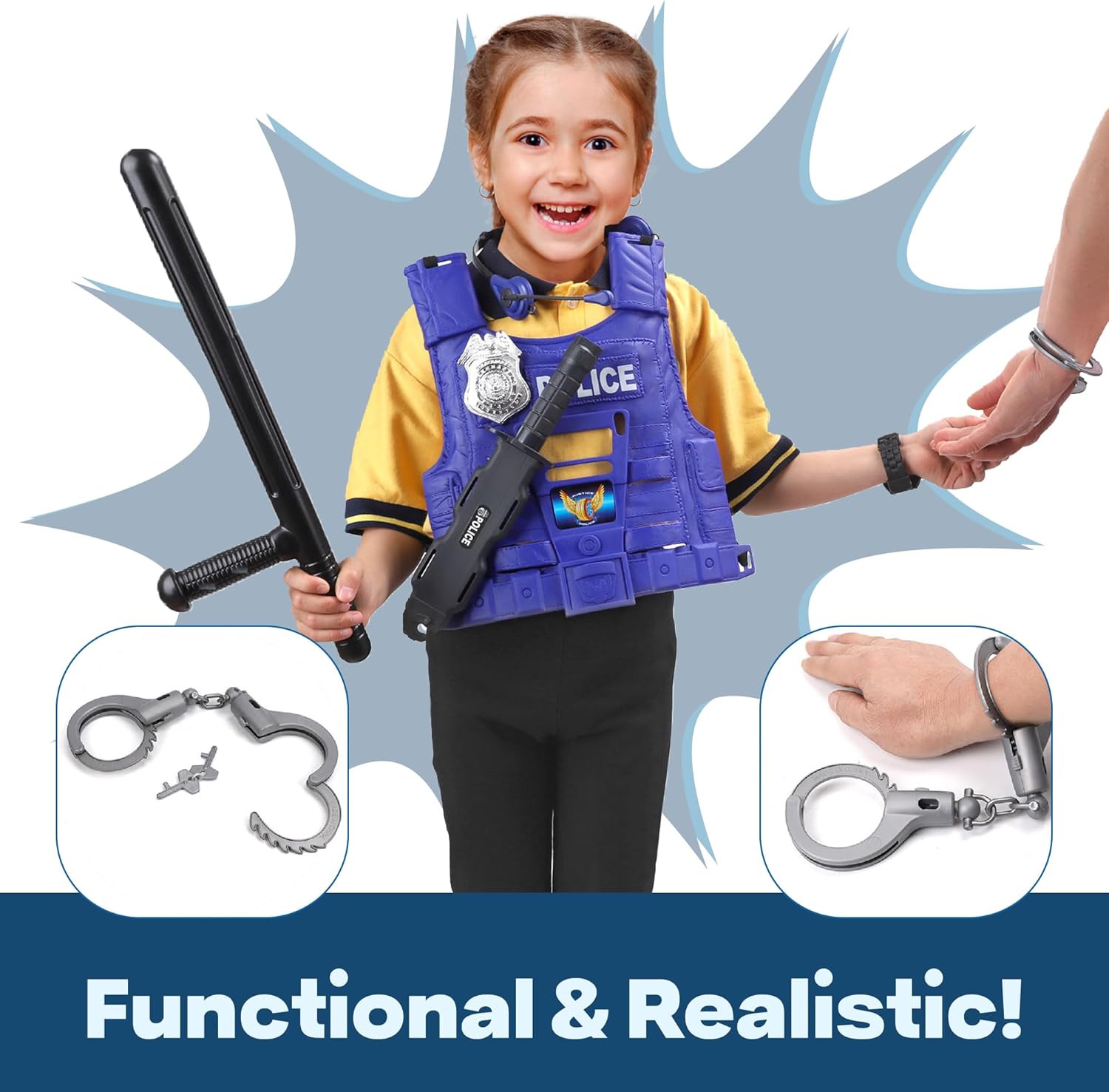 DRESS UP ACCESSORIES: Now your toddler can spend endless hours of fun playing cops and robbers and pretending to be a real police officer with our durable and sturdy police outfit accessories set!