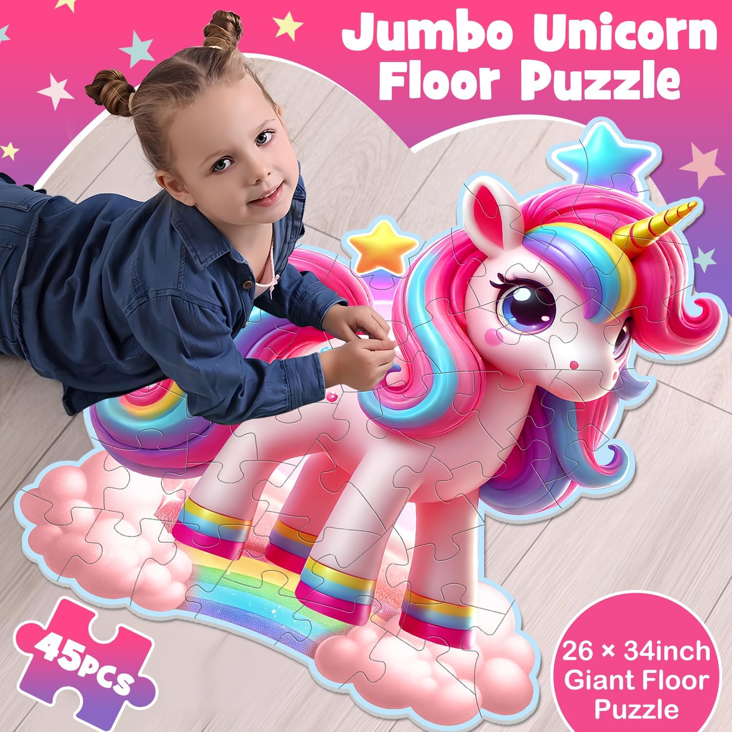 Unicorn Puzzles for Kids Age 4-6, 45PCS Giant Floor Puzzles Educational Jigsaw Puzzles for Kids Unicorn Gifts for Girls 4 5 6 7 8 Years Old