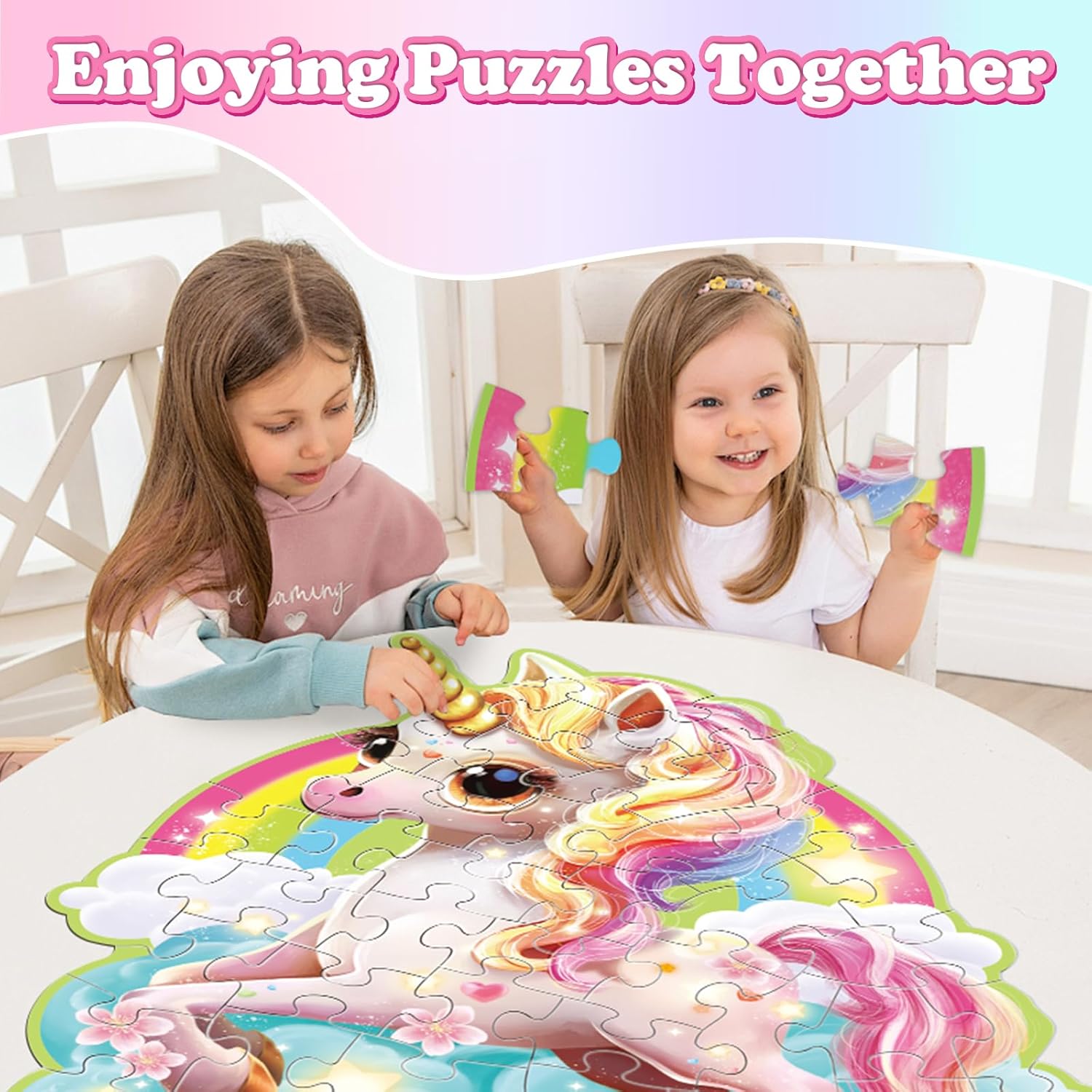 【Ideal Gift for Girls】Exquisite gift box packaging, convenient to carry and store. Perfectly designed gift for girls aged 3-8, this Jigsaw Puzzles combines fun and learning in one magical package. Ideal for birthdays, holidays, or just because, this unicorn puzzle makes a wonderful gift for any young girl who loves unicorns and puzzles