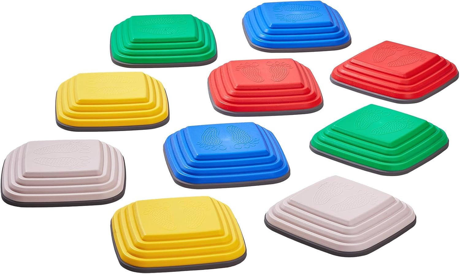 10-Piece Sensory Toy Set: Balance stepping stones with playful geometric designs and vibrant colors captivate kids’ attention and spark their curiosity. Beyond basic balance training, mix and match with the color wheel and other toys for endless play options, boosting kids’ skills while keeping the fun fresh.