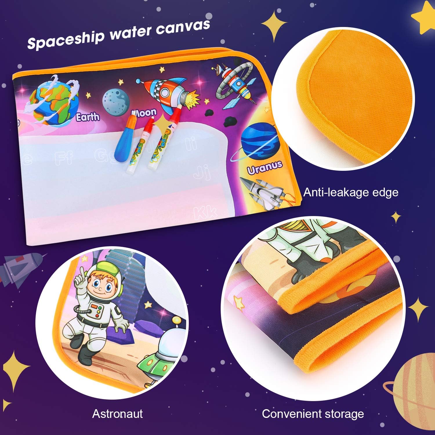 Water Doodle Drawing Mat: Water magic drawing mat is made of water-resistant canvas. No ink, no paint, non polluting which is good for toddlers health. Large painting doodle pad is light and good storage. It take little space, portable to carry, suitable for outdoor or travel. Perfect writing and painting doodle board toy for kids that love scribbling or drawing.