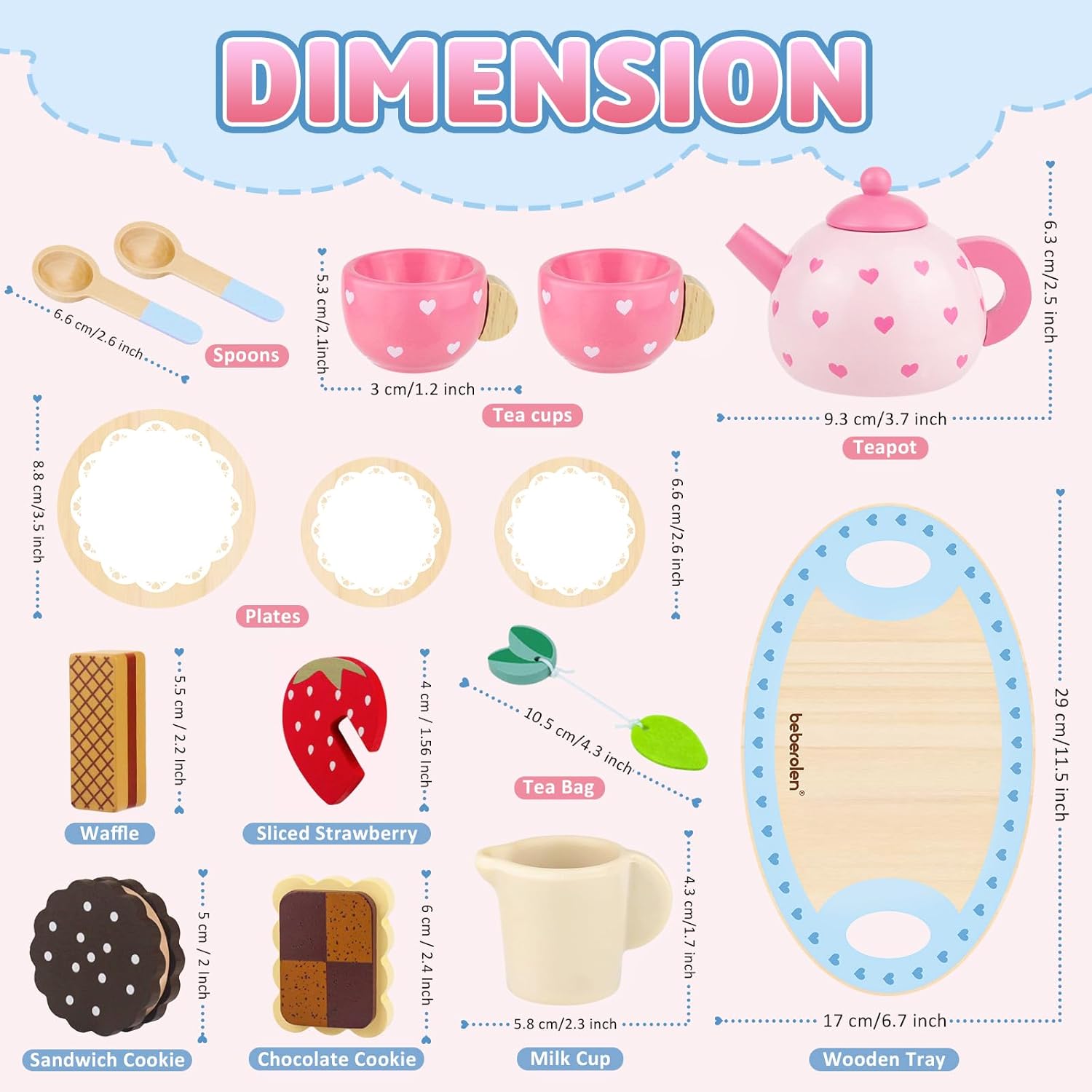 Ideal Gift & Screen-Free: Looking for the gift for 2-4 year old girls? Look no further! The Beberolen wooden tea set for girls is an ideal present for little ones who love kitchen playsets and wooden toys. It provides a wonderful screen-free play option. Suitable for toddlers, preschoolers, boys, girls, and kids above 3 years old