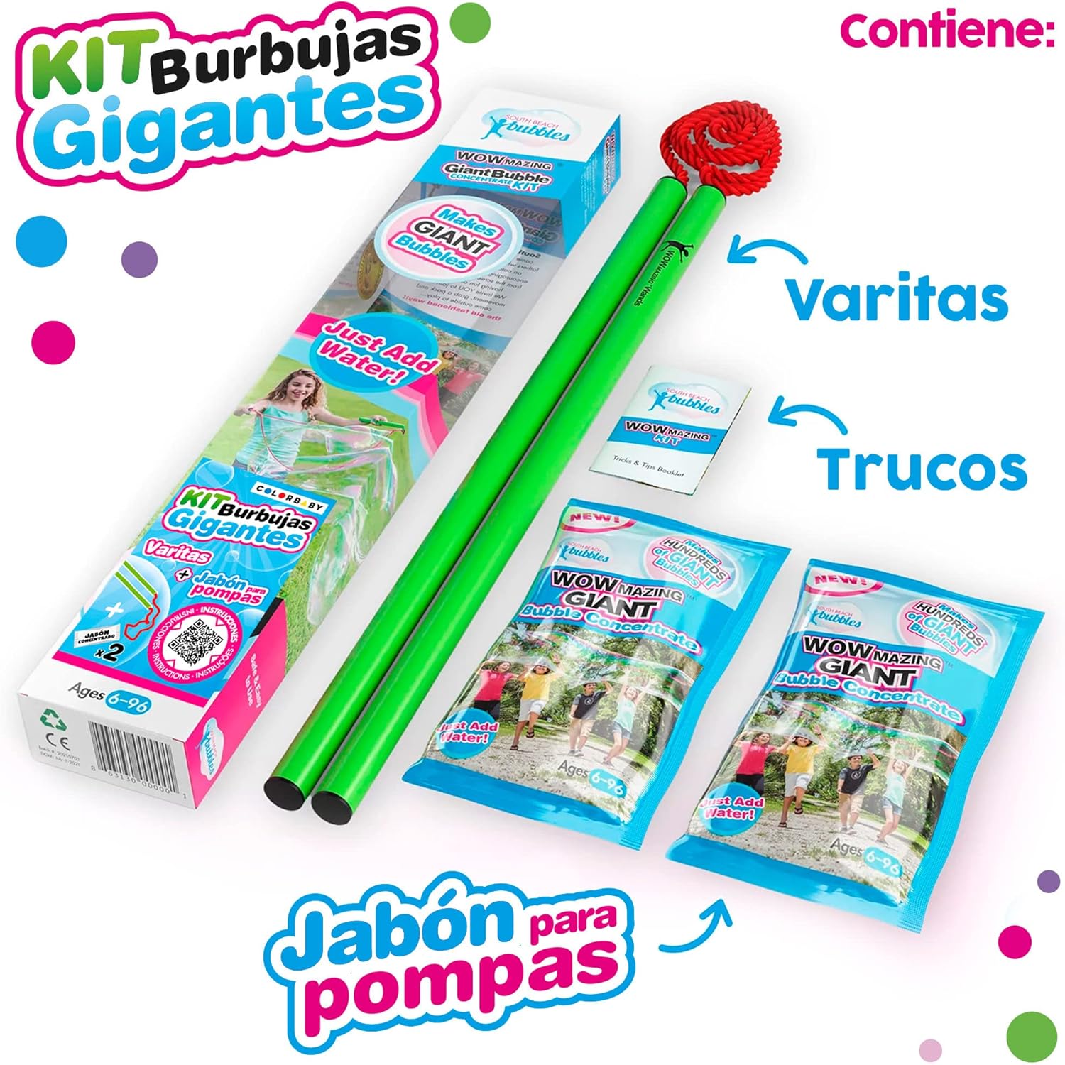 COMPLETE KIT: The 4-piece WOWmazing Kit contains everything you need to create bubbles that are big, colorful, and fun: a set of giant bubble maker, 2 pouches of WOWmazing Bubble Concentrate, and a Tip & Tricks booklet to help you become a master bubble creator!